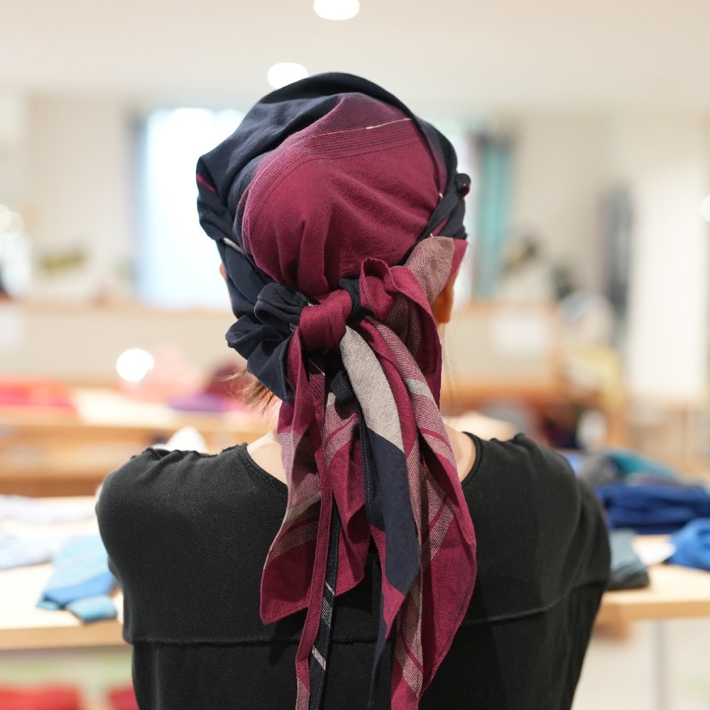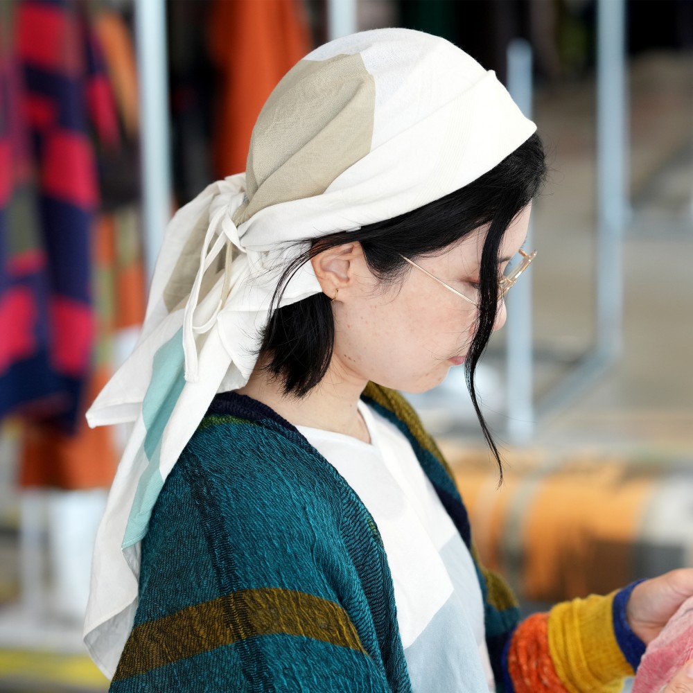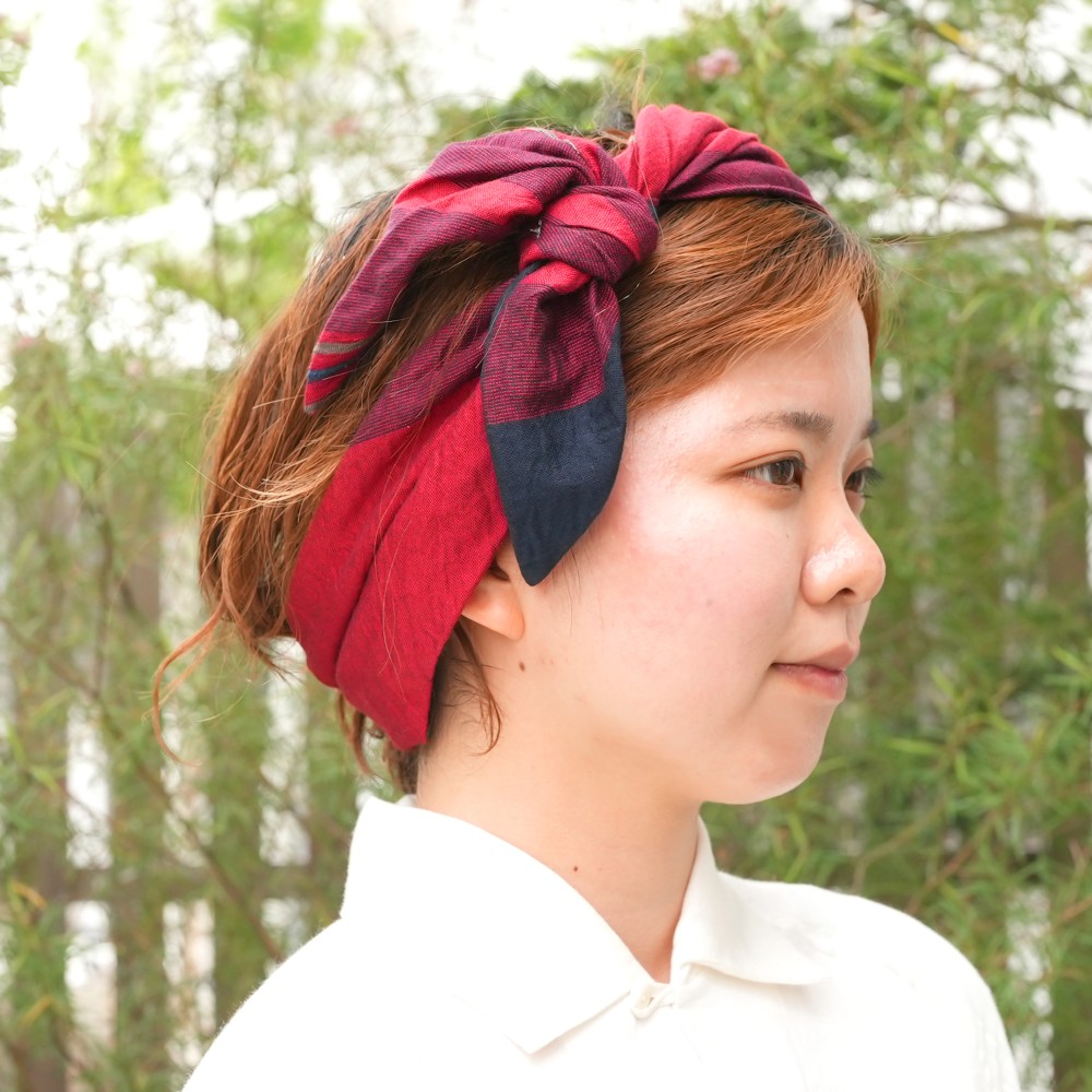 バンダナっぽく、ターバンとして、スカーフみたいにあたまだけじゃなく、首もとや腰に巻いたり、自由自在。