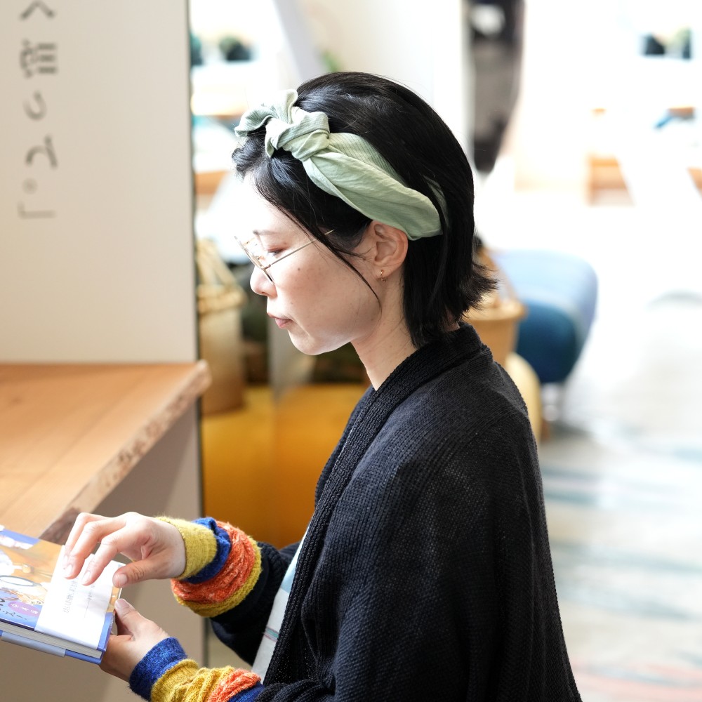はしっこの穴に通して、スカーフみたいに巻いたり、結んだり。たちまち雰囲気のあるスタイリングに。