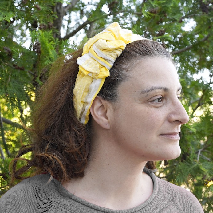 サイズ調節ができるヘアバンド。見せ方ひとつで“りぼん”にも“ねじり”にも。