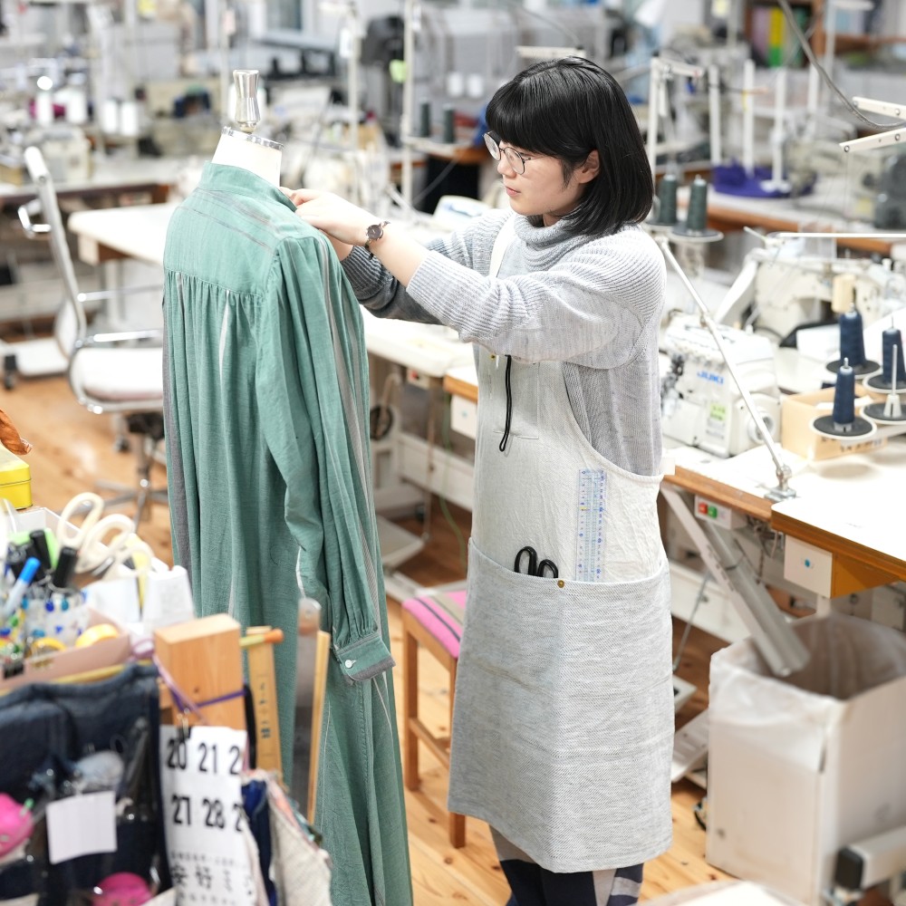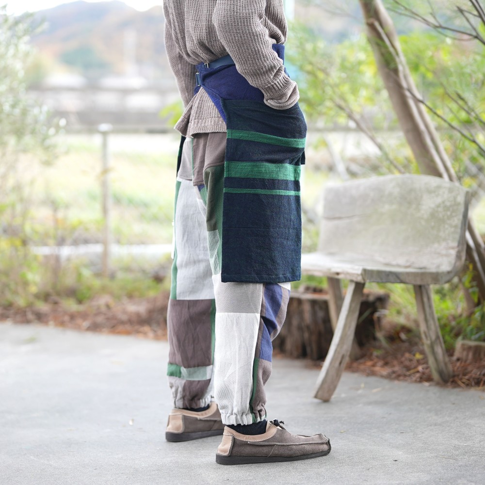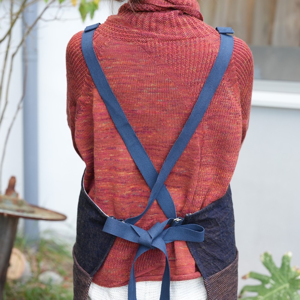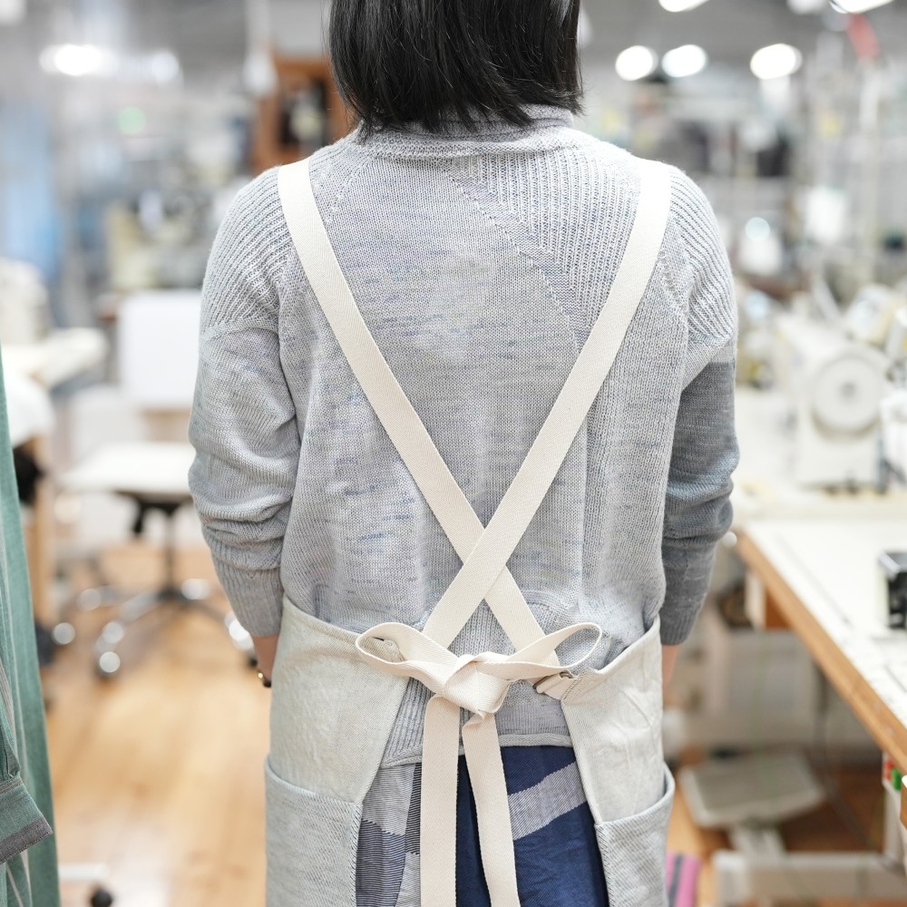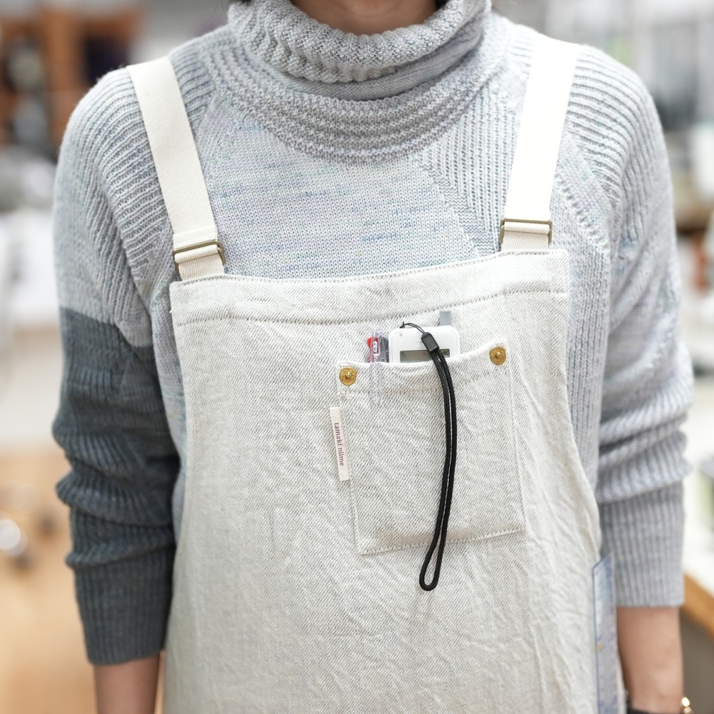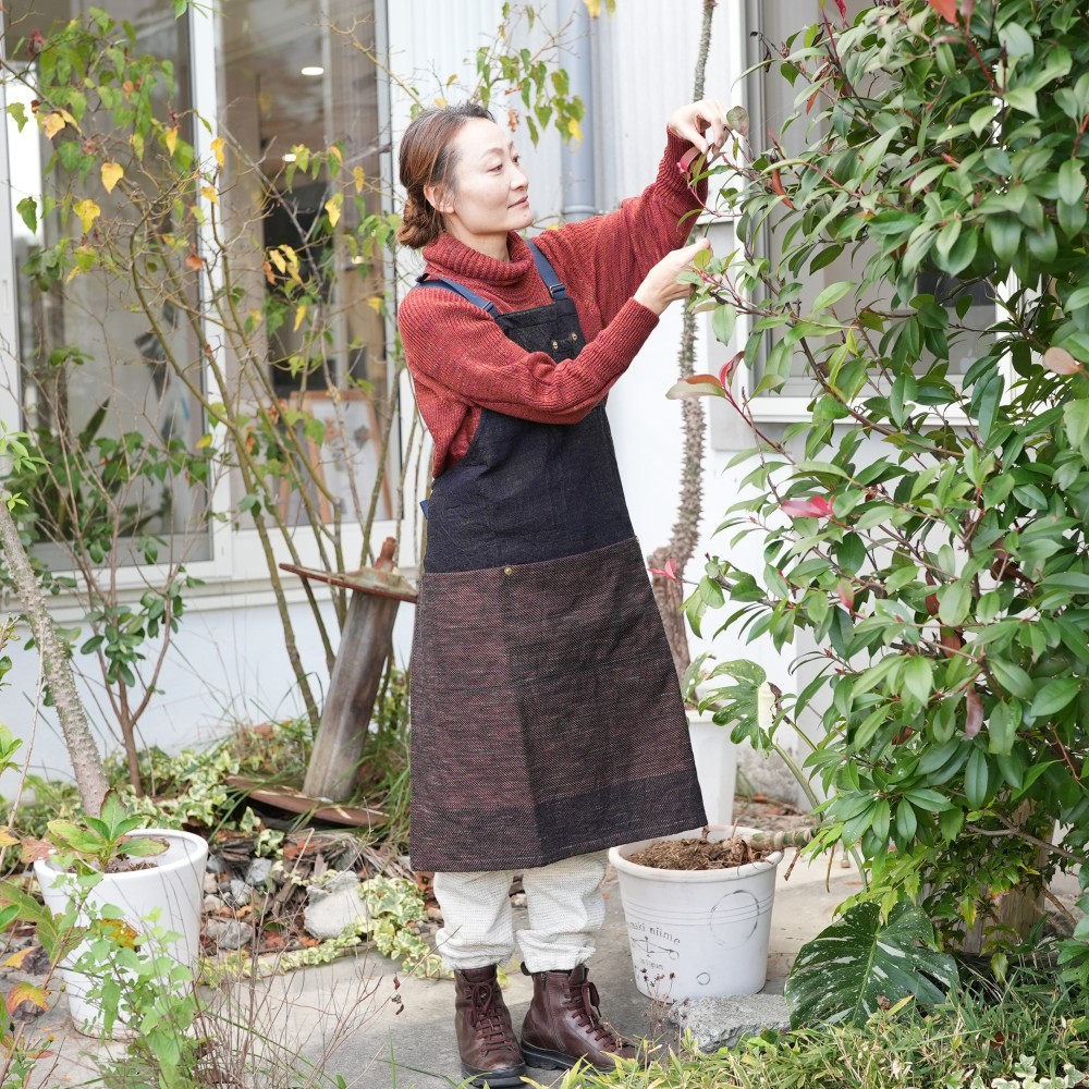 Seeing the clothes of the Lab staff were getting dirty by our creations, we thought it would be more fun to wear an apron and let it change over time! That's how "maeka" was created. Aprons reflect the histories of the wearers and the lives they lead. Denim, with its durability and ability to age and mold to the body over time, is the perfect match. It has three pockets and the top half can be folded down to become a waist apron.