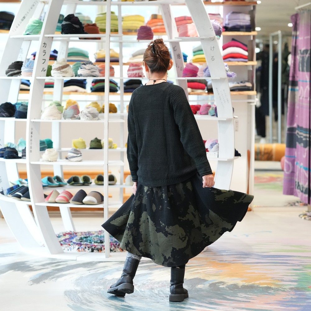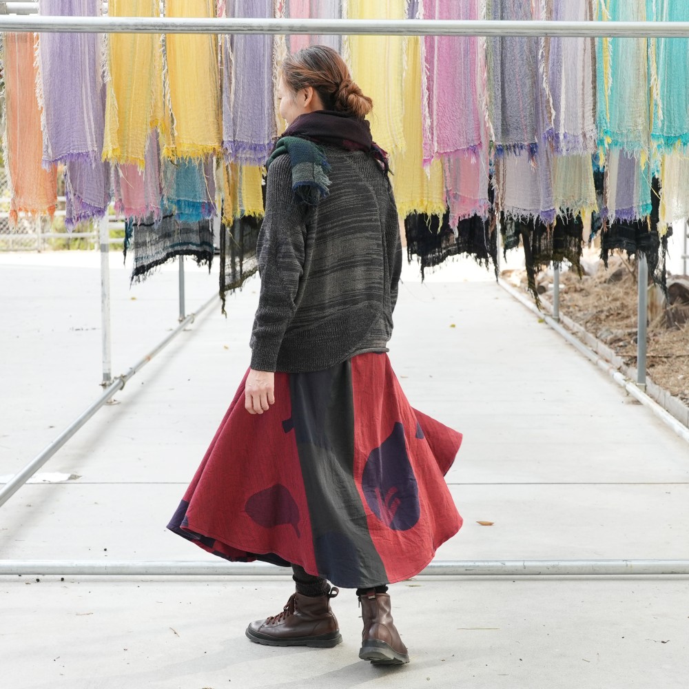 We created a fascinating skirt with the atmosphere of tarun pants.