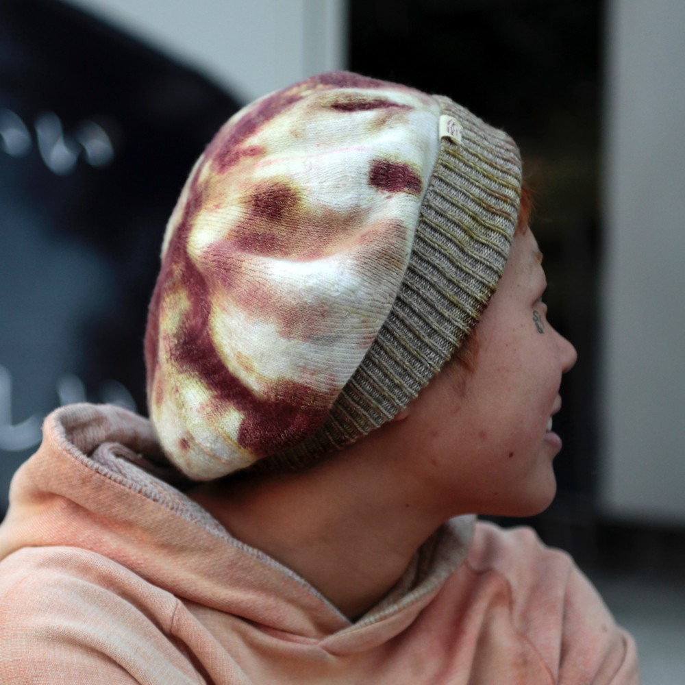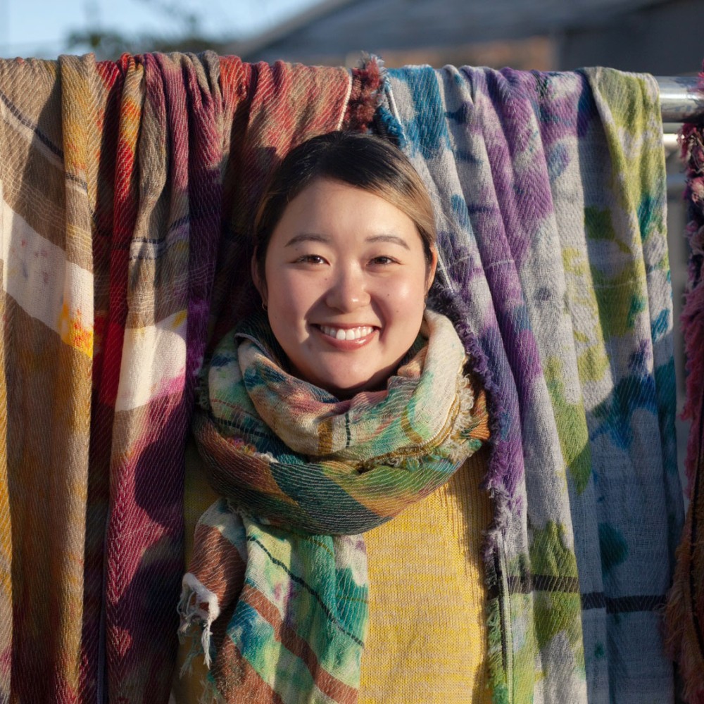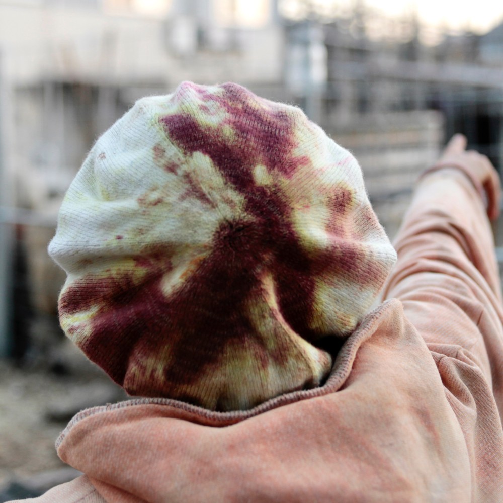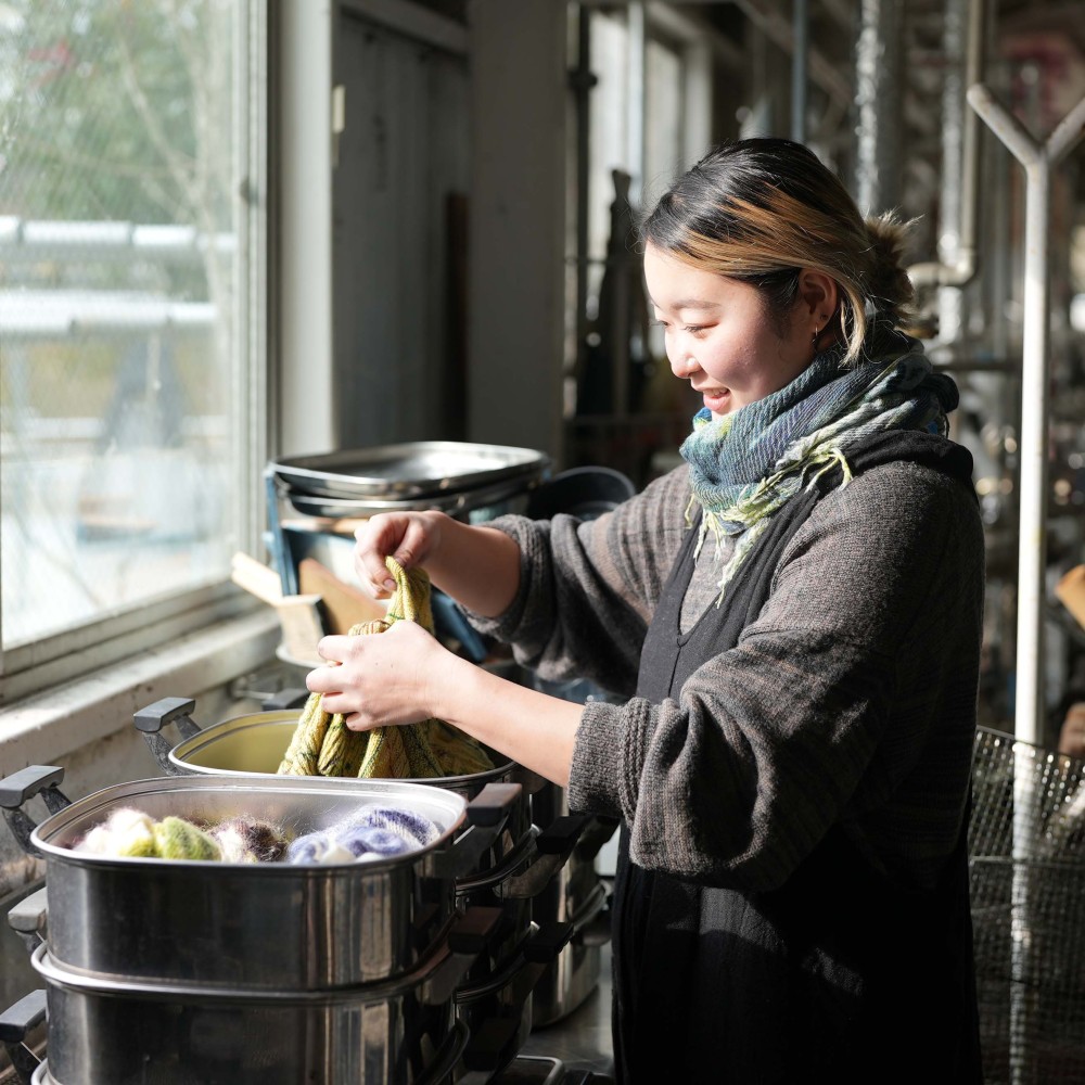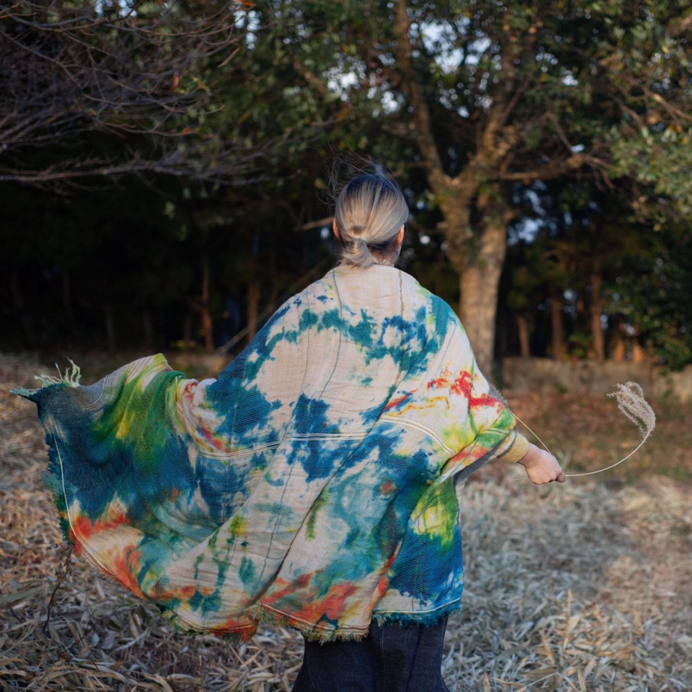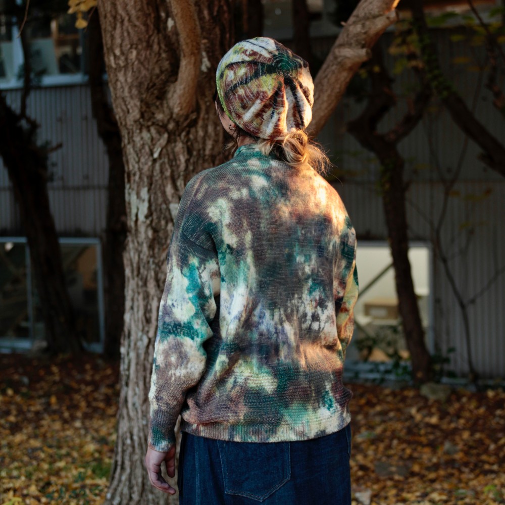 We think outside the box and with flexible ideas, it's dyed by combining various techniques such as traditional tie-dye and dyeing with wooden plates.