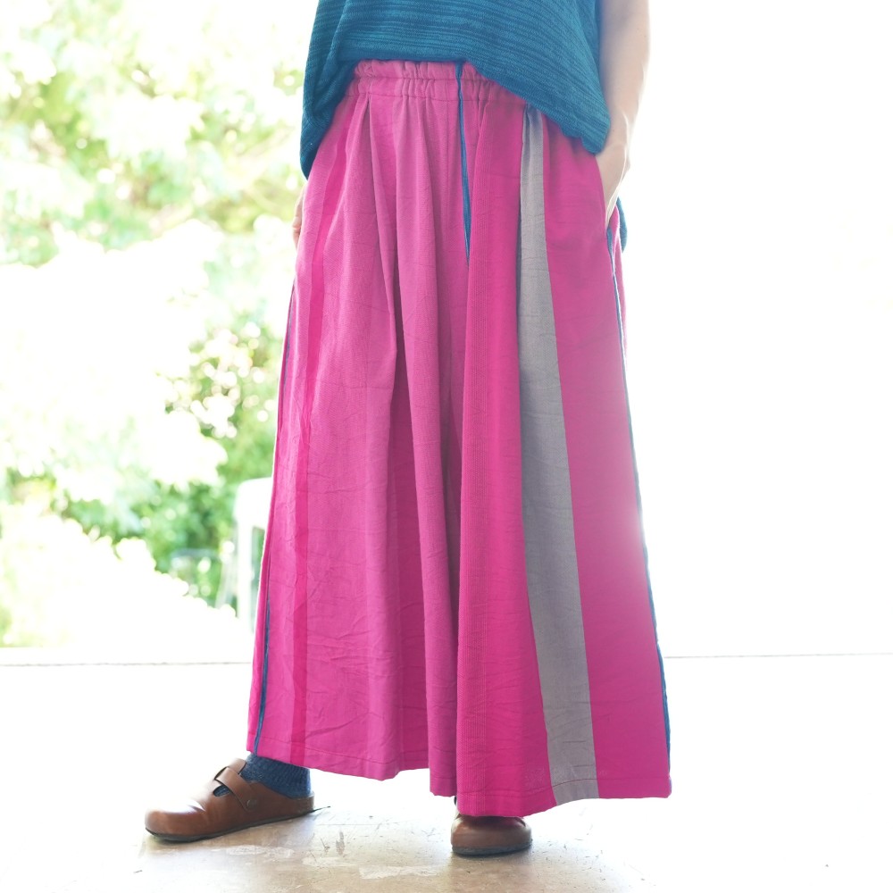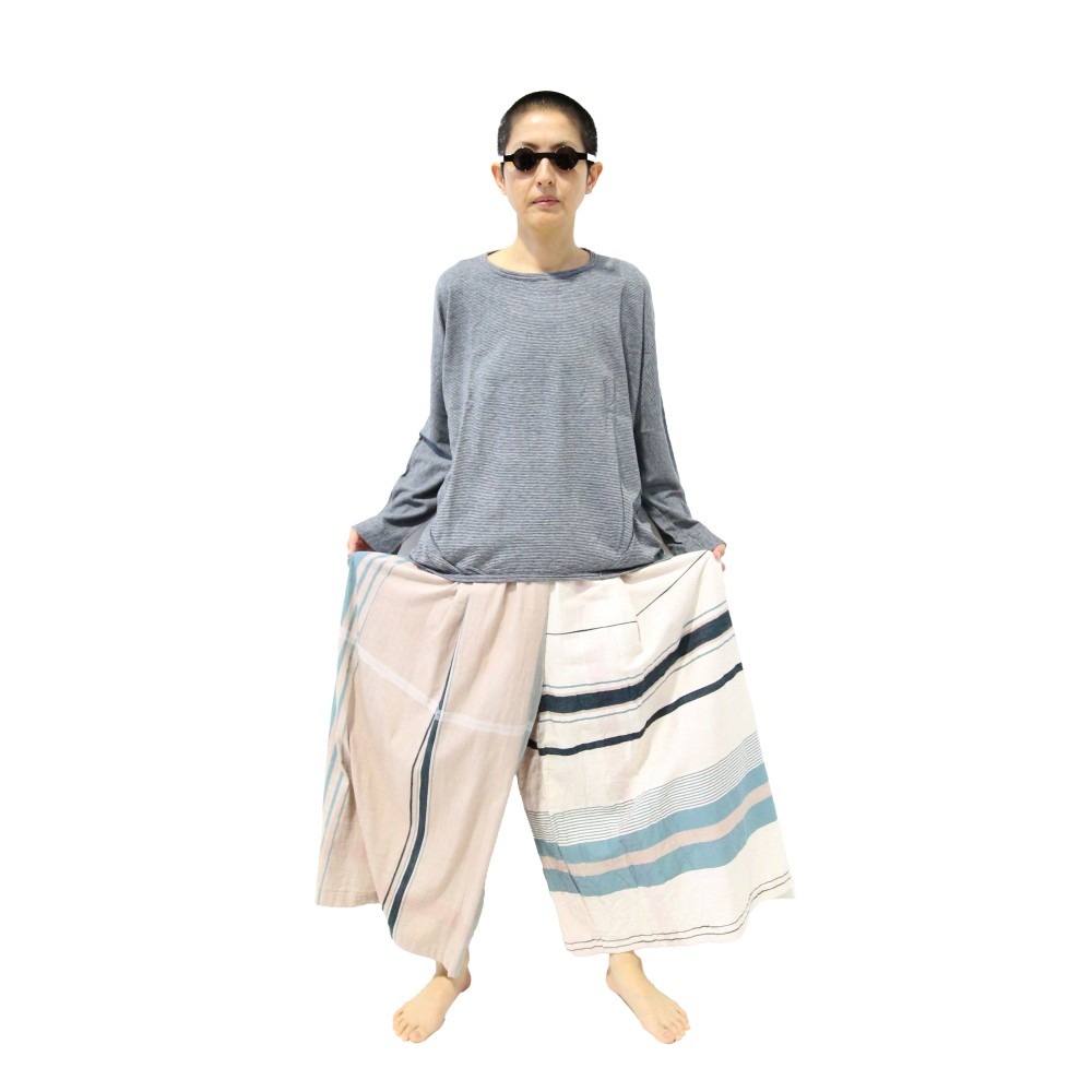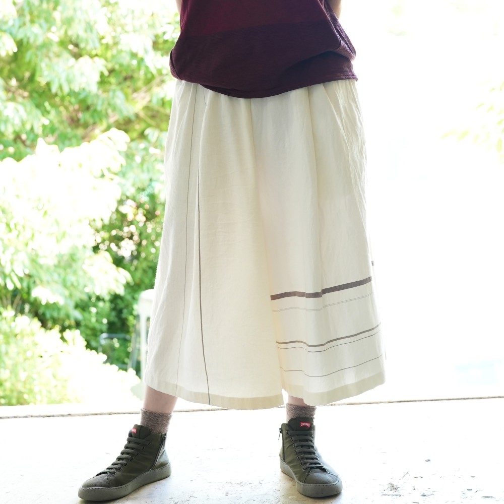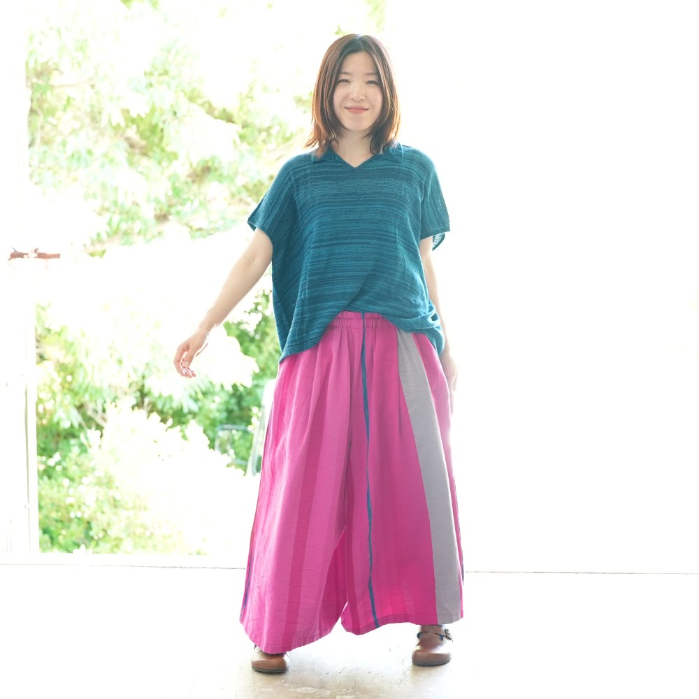 It’s a wide pants that using the textile of tamaki niime simply and luxuriously.