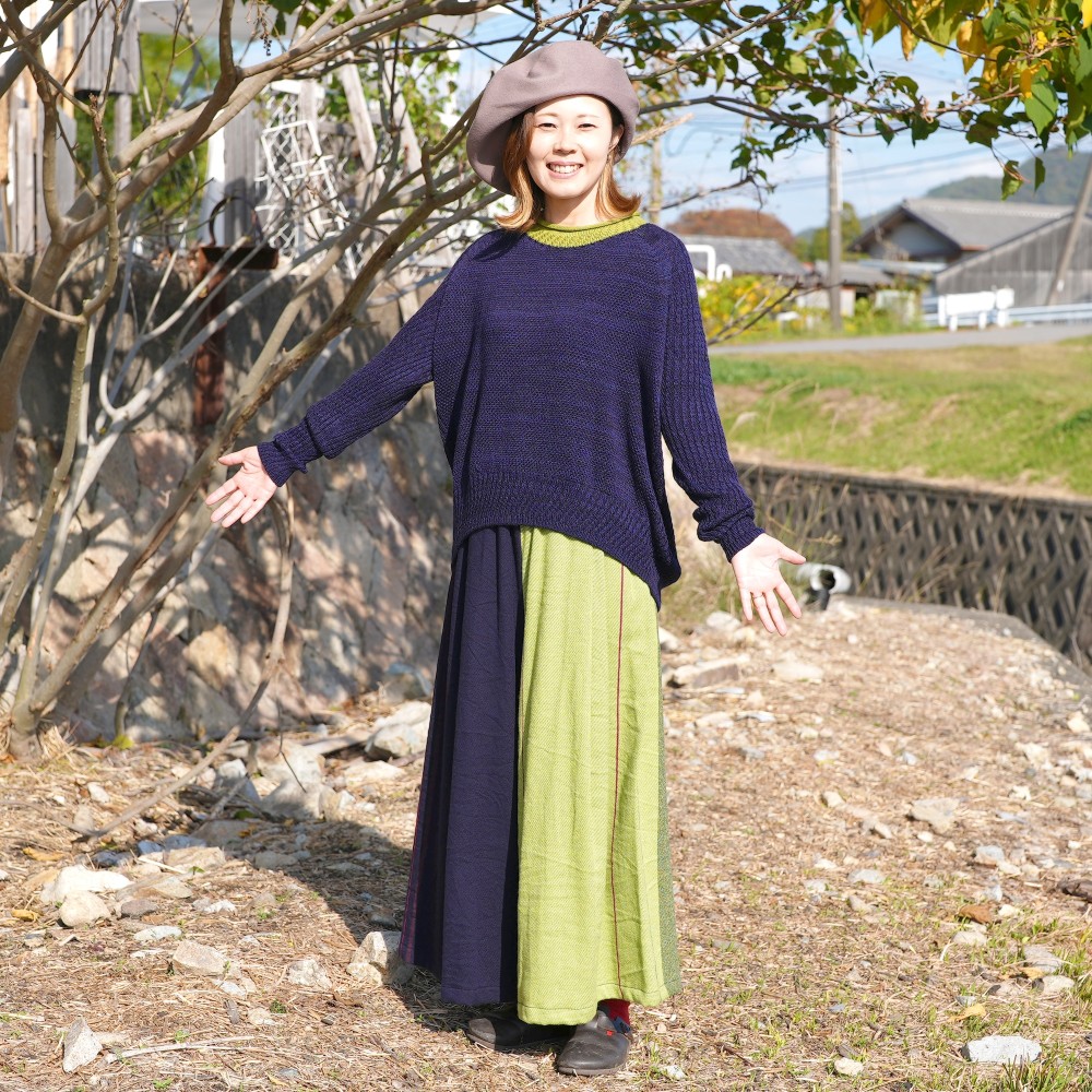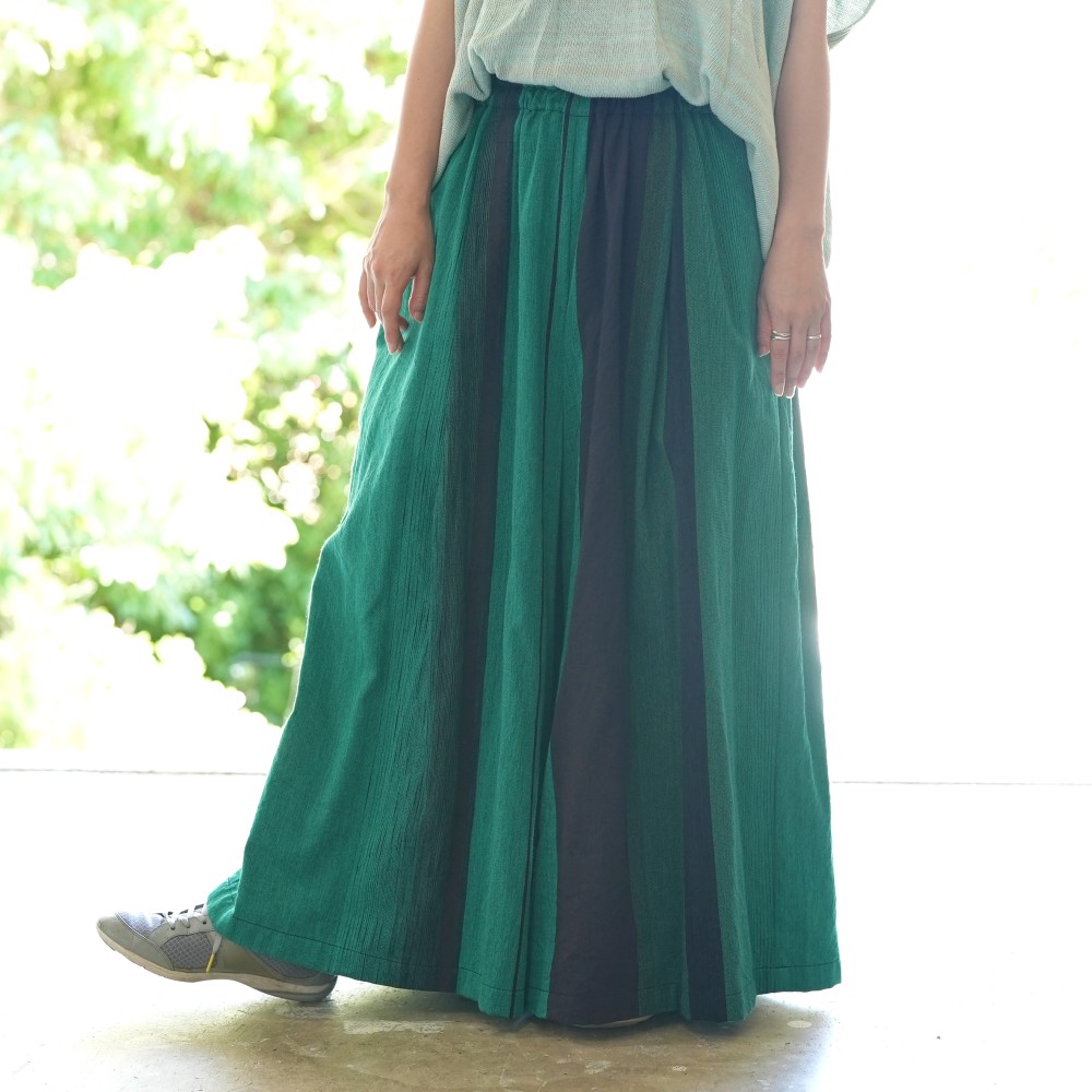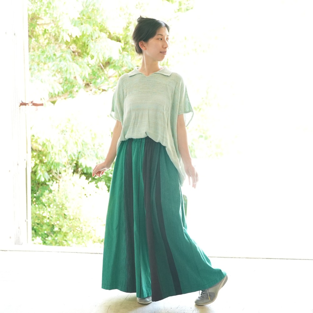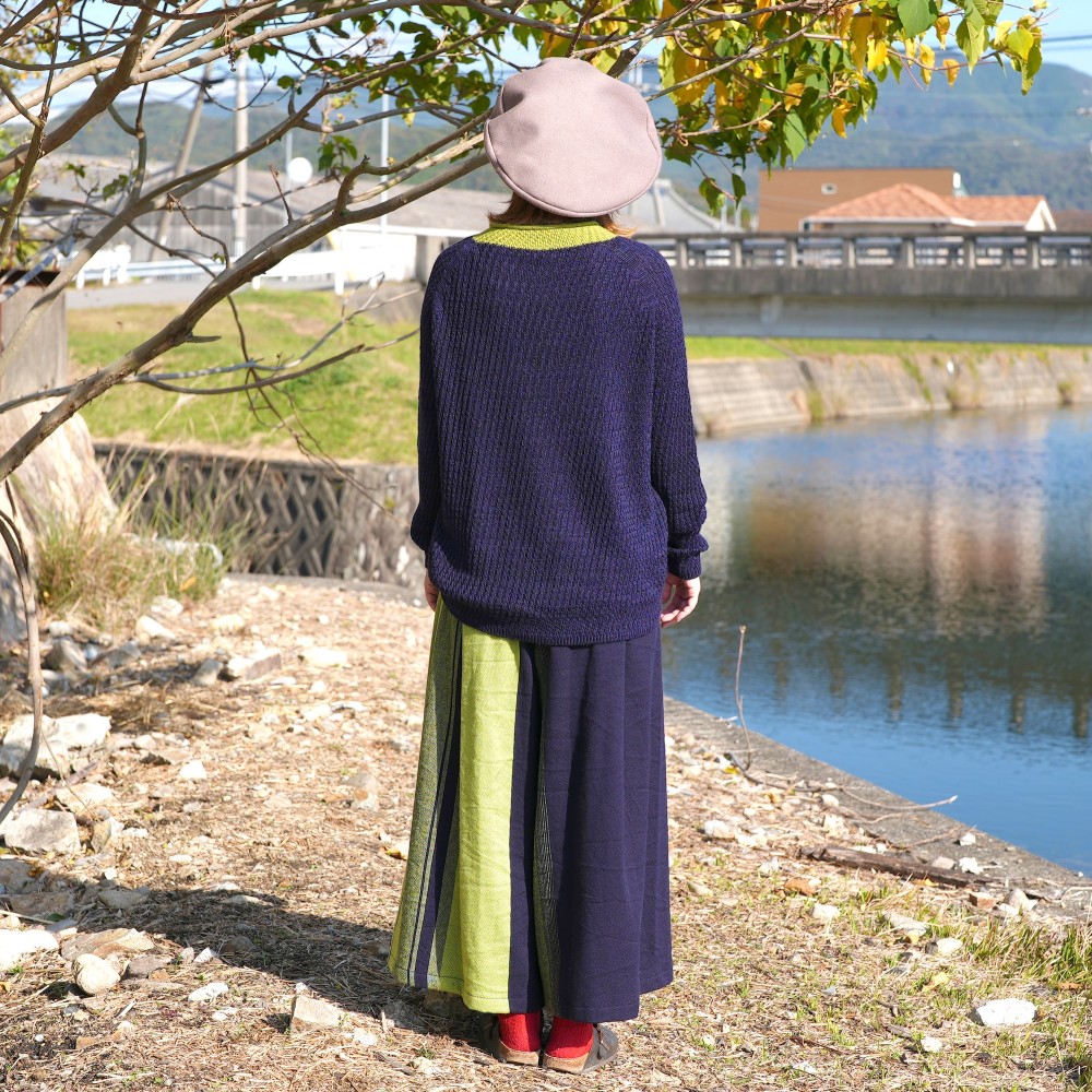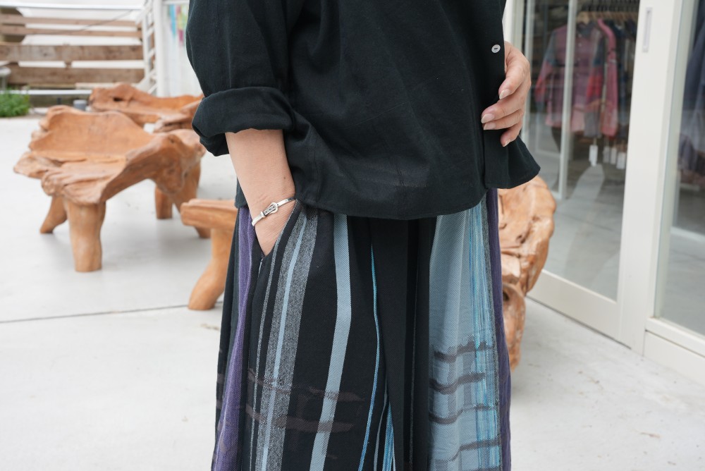 It’s a wide pants that using the textile of tamaki niime simply and luxuriously.