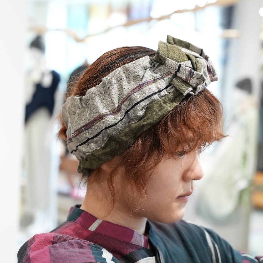 サイズ調節ができるヘアバンド。見せ方ひとつで“りぼん”にも“ねじり”にも。