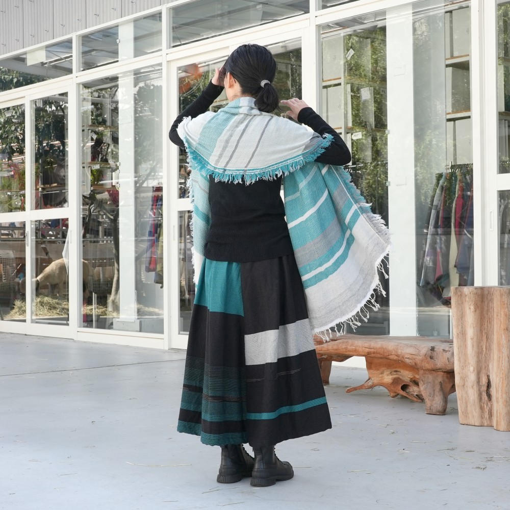 Warm and gentle touch wool that we knitted slowly and loosely.
