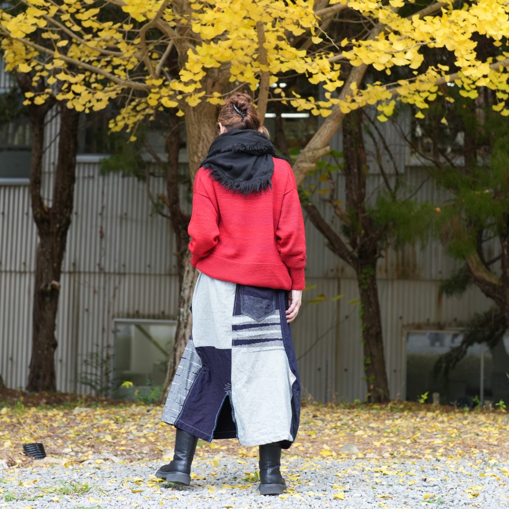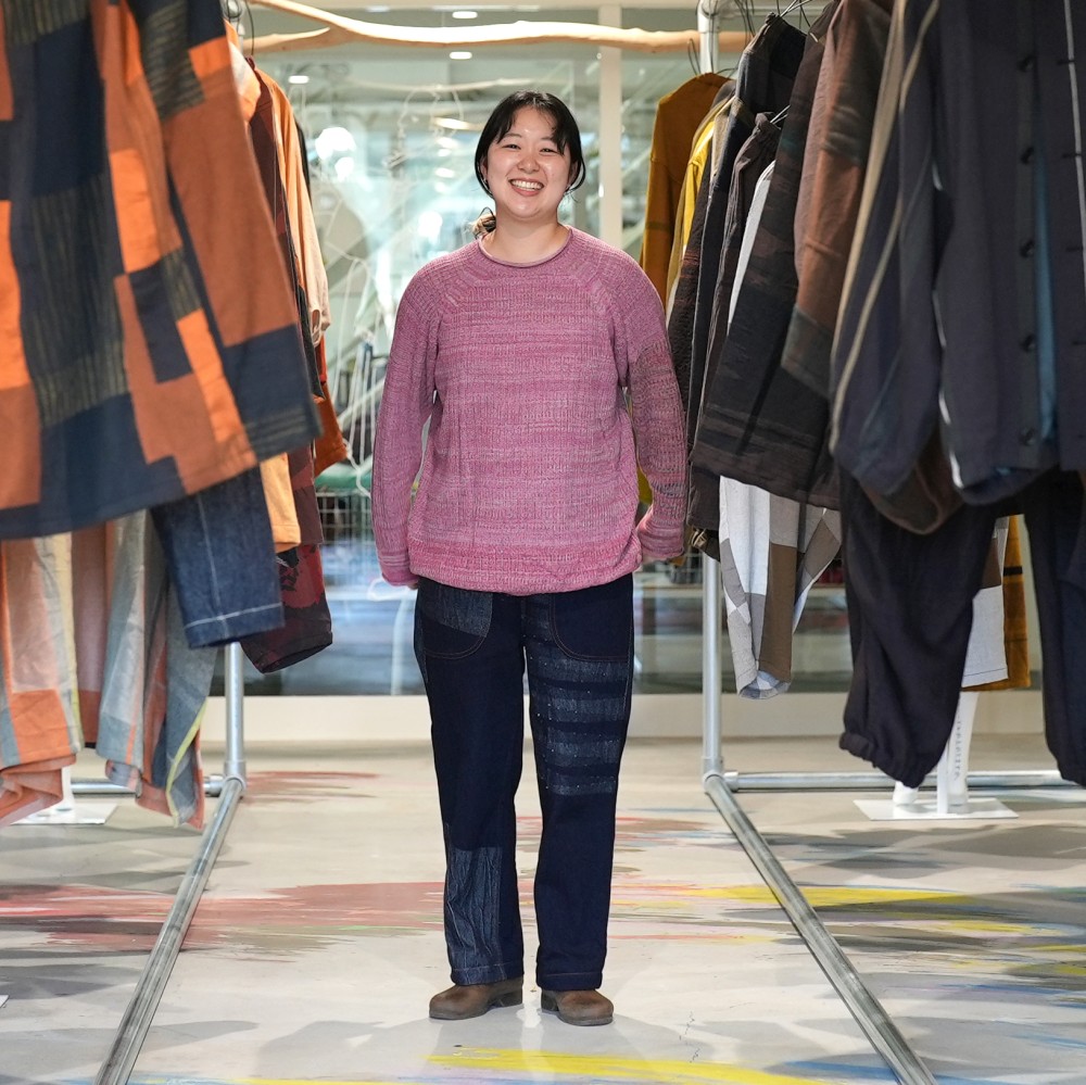 これまでつくりあげてきたデニムの中でも群を抜いて、やわらか。綾織をベースに、色が主役になるように緯糸を表地にがっつりと出しきれいに見える形、大きさ、配置を追及しました。刺し子のような、手仕事感のある色が主役のデニム。
