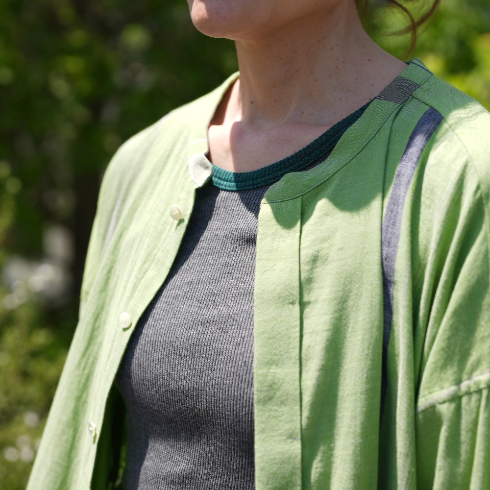 We made a cut-and-sew which has excellent silhouette and comfort.