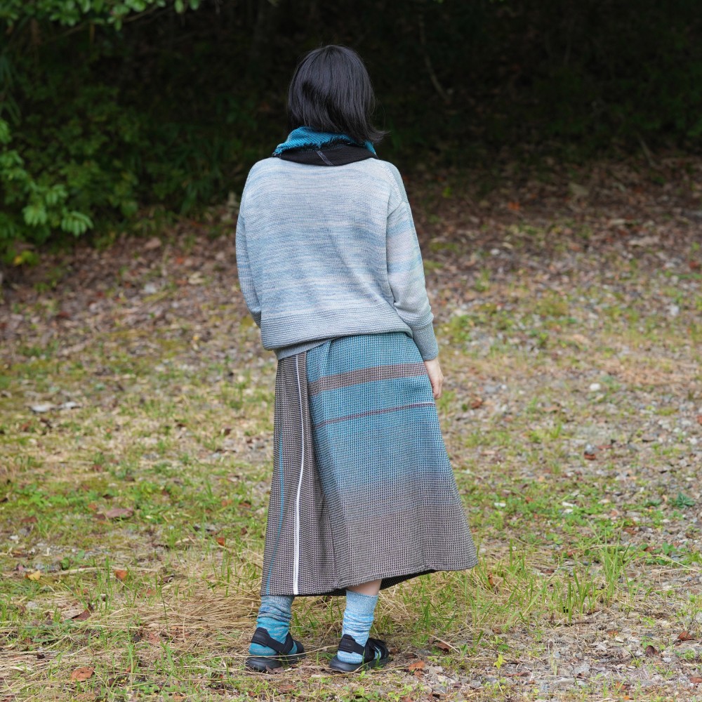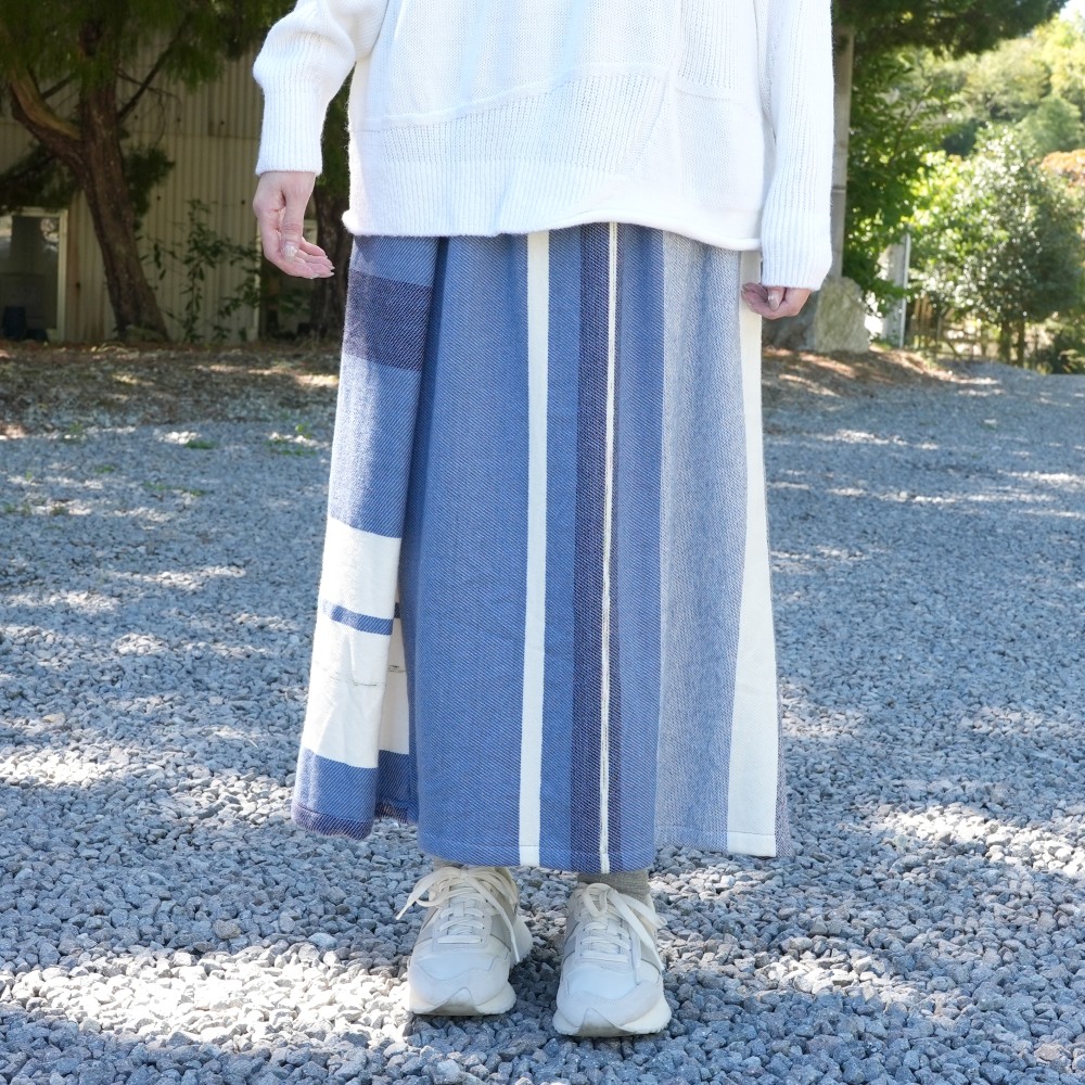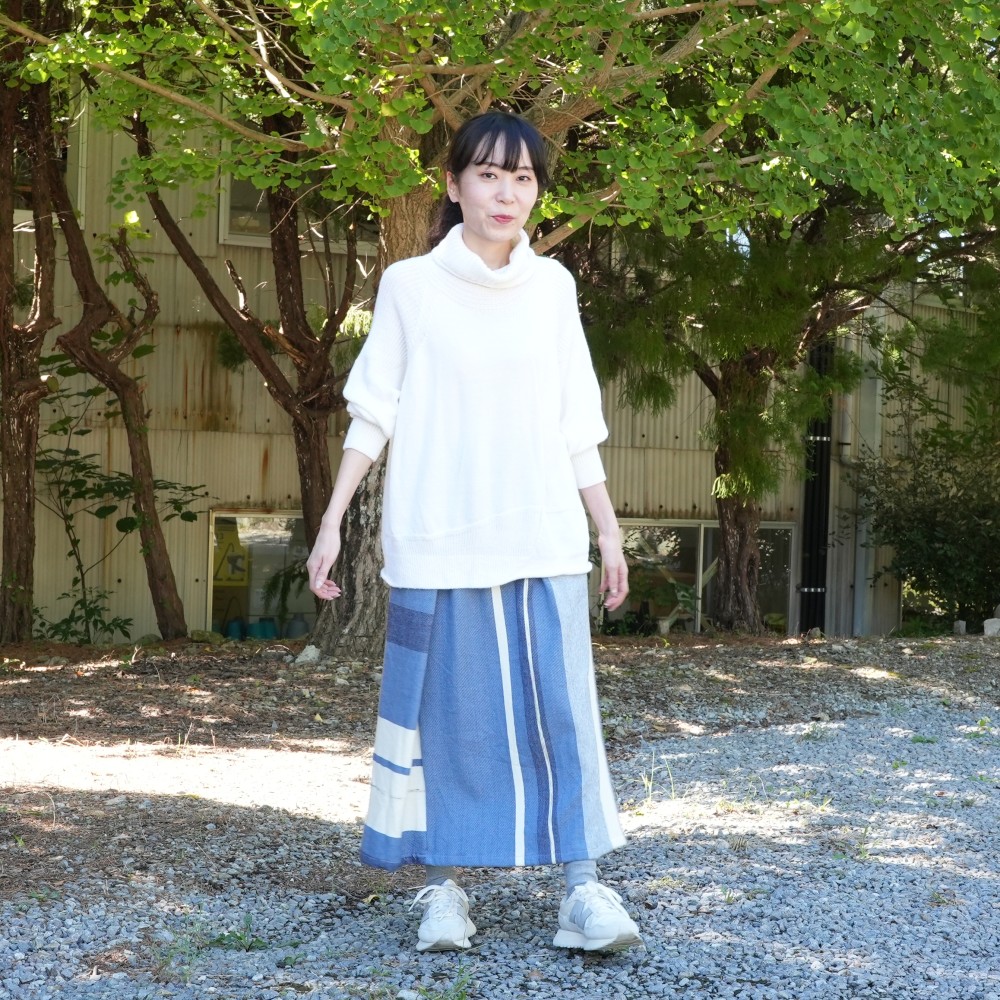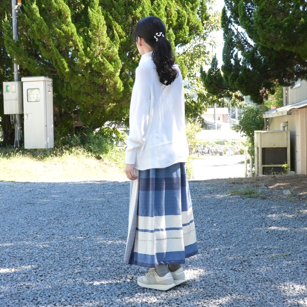 We created basic style skirt that can enjoy the fabric itself with the warm wool which matches with knit.