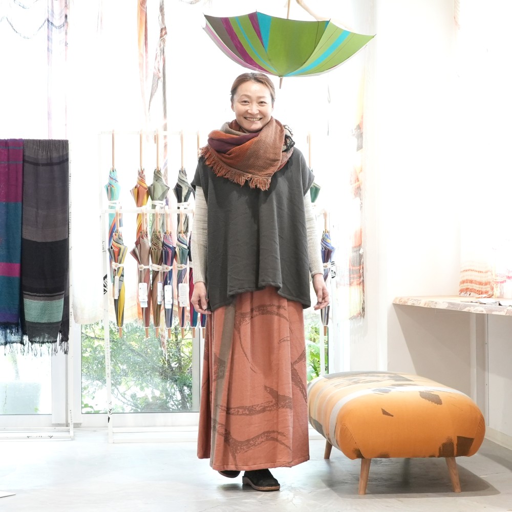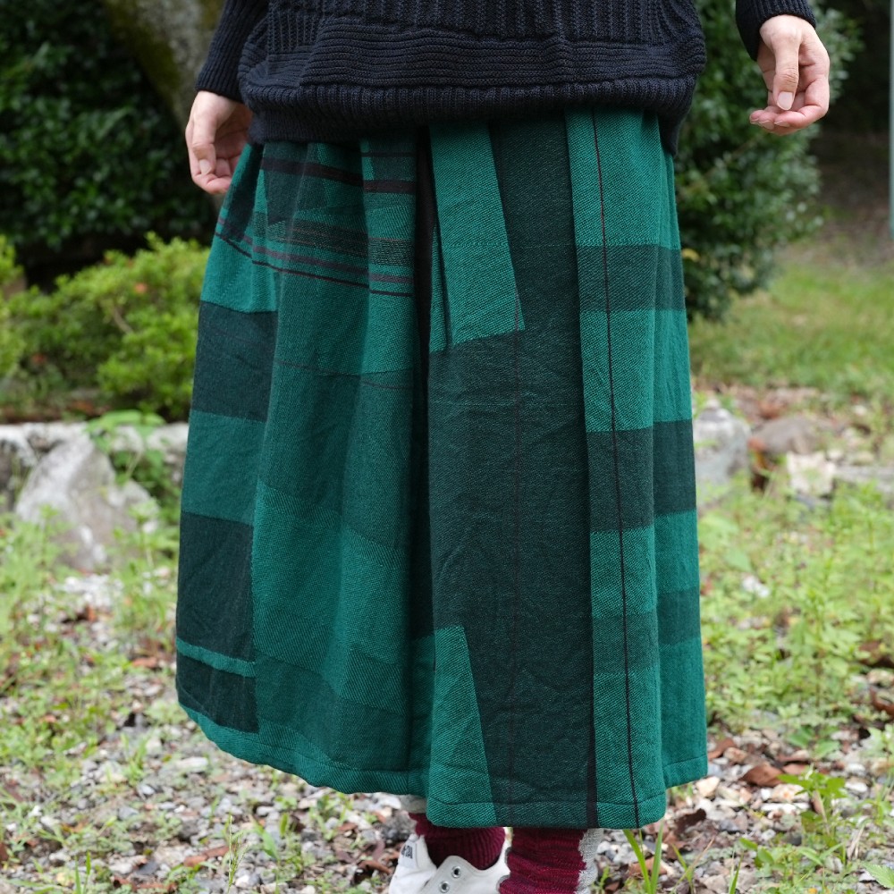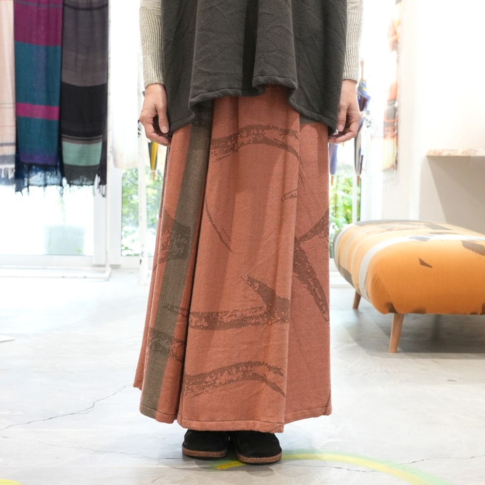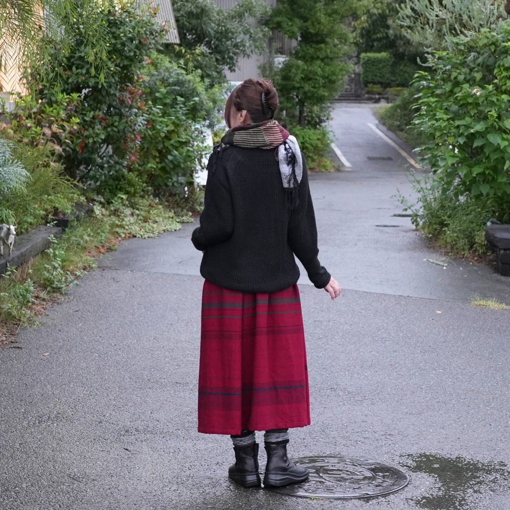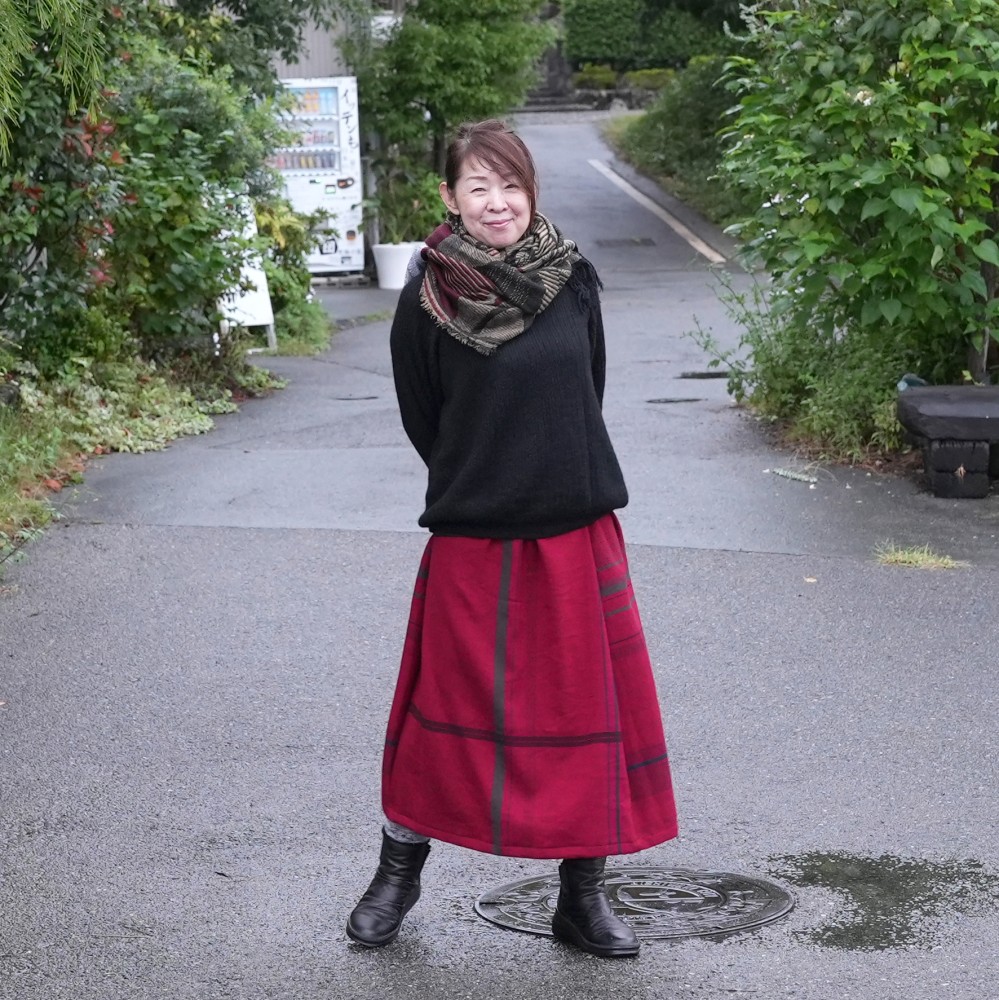 We created basic style skirt that can enjoy the fabric itself with the warm wool which matches with knit.