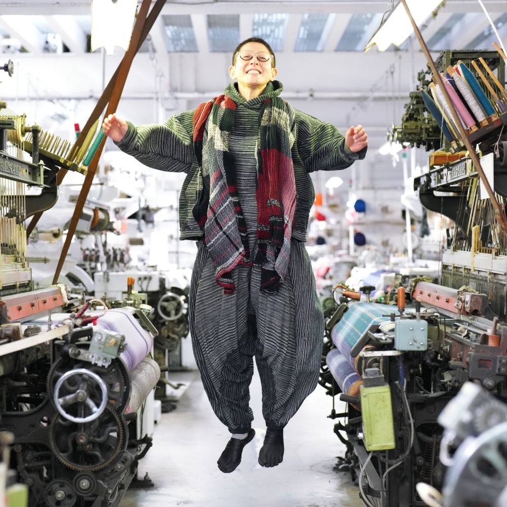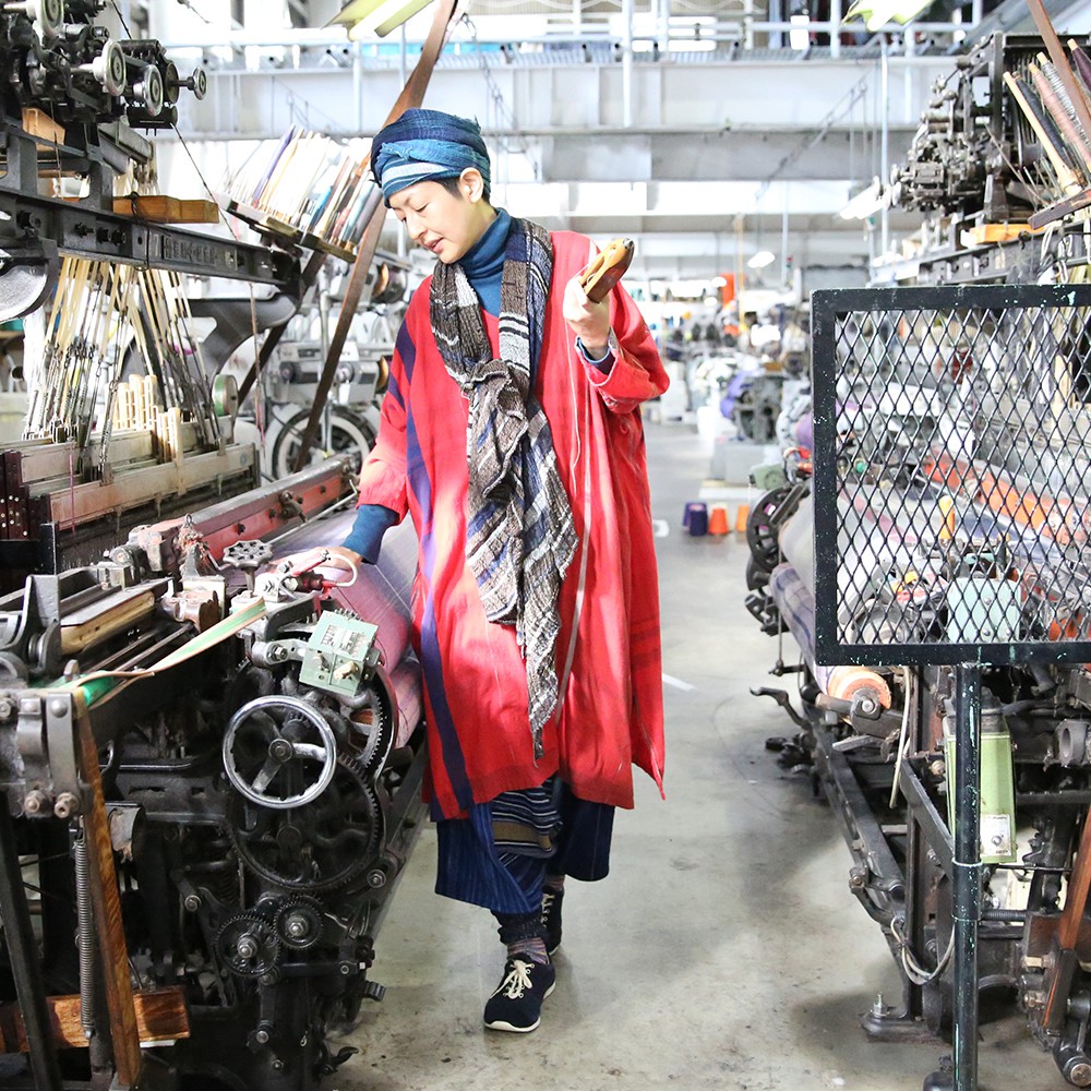 Weaving with a vintage power loom of the 1960s, it's a shawl that tamaki niime's origin.