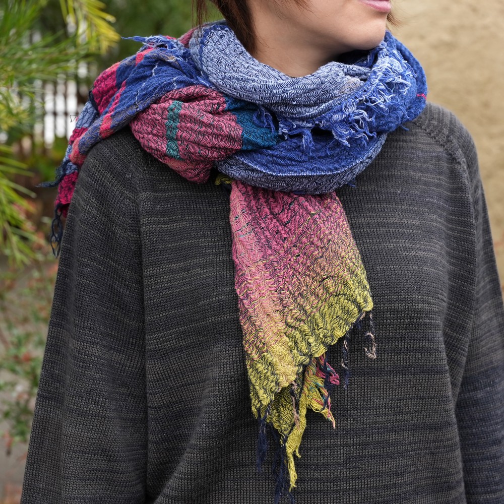 The MIDDLE, which is half the width of the BIG can be wrapped around the neck, hung over your shoulder or tied to accentuate your outfit.