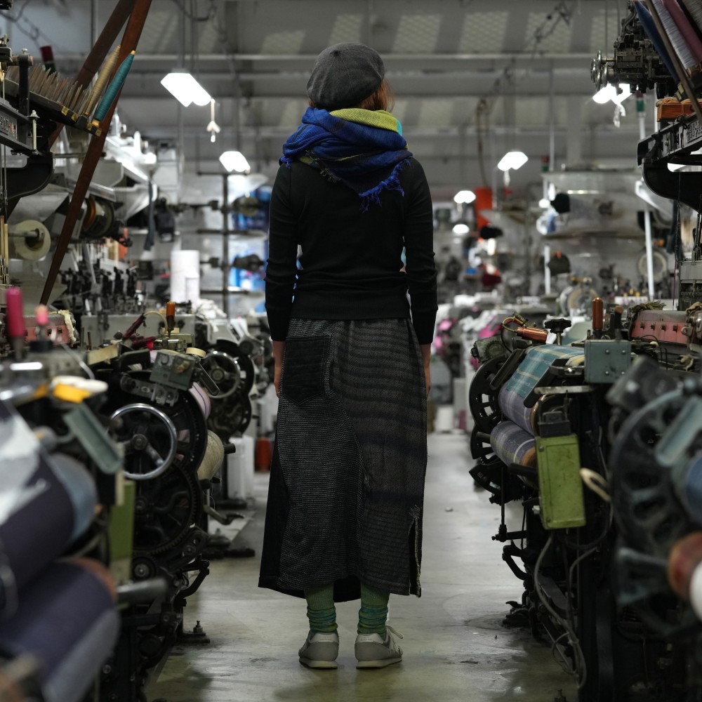Our denim is slowly woven by a power loom of the 1960s at tamaki niime's Lab.