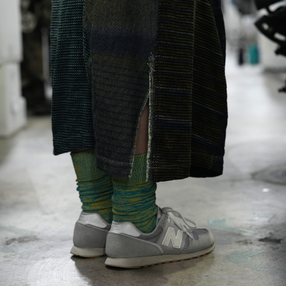 これまでつくりあげてきたデニムの中でも群を抜いて、やわらか。綾織をベースに、色が主役になるように緯糸を表地にがっつりと出しきれいに見える形、大きさ、配置を追及しました。刺し子のような、手仕事感のある色が主役の、デニム。