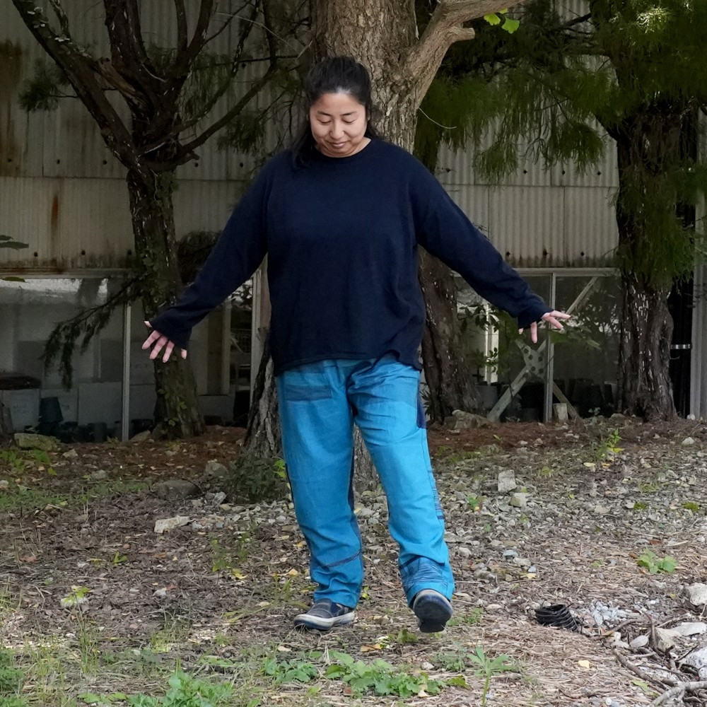 Compared to the slim monpe, it’s looser around the hips and wider from the knees to the calves for greater comfort and ease of movement.
