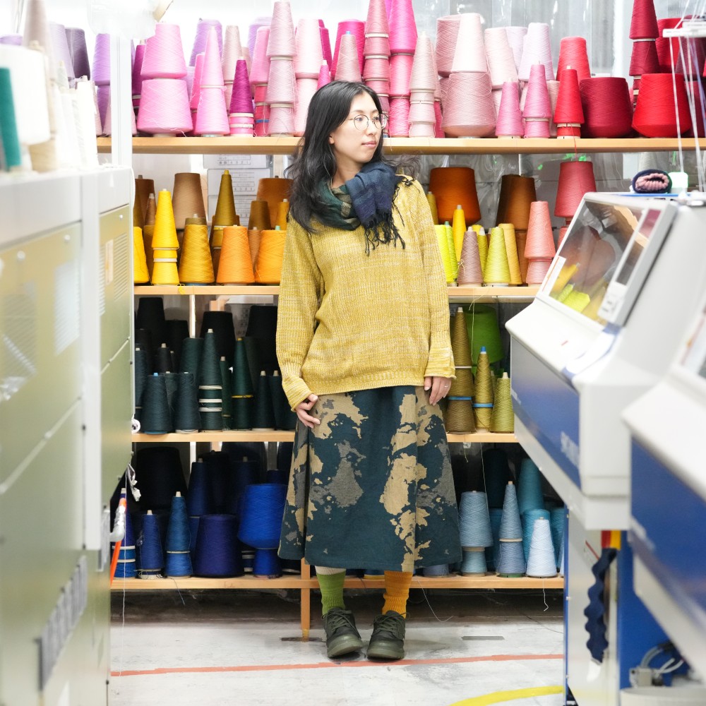 伸縮性のある糸を使った