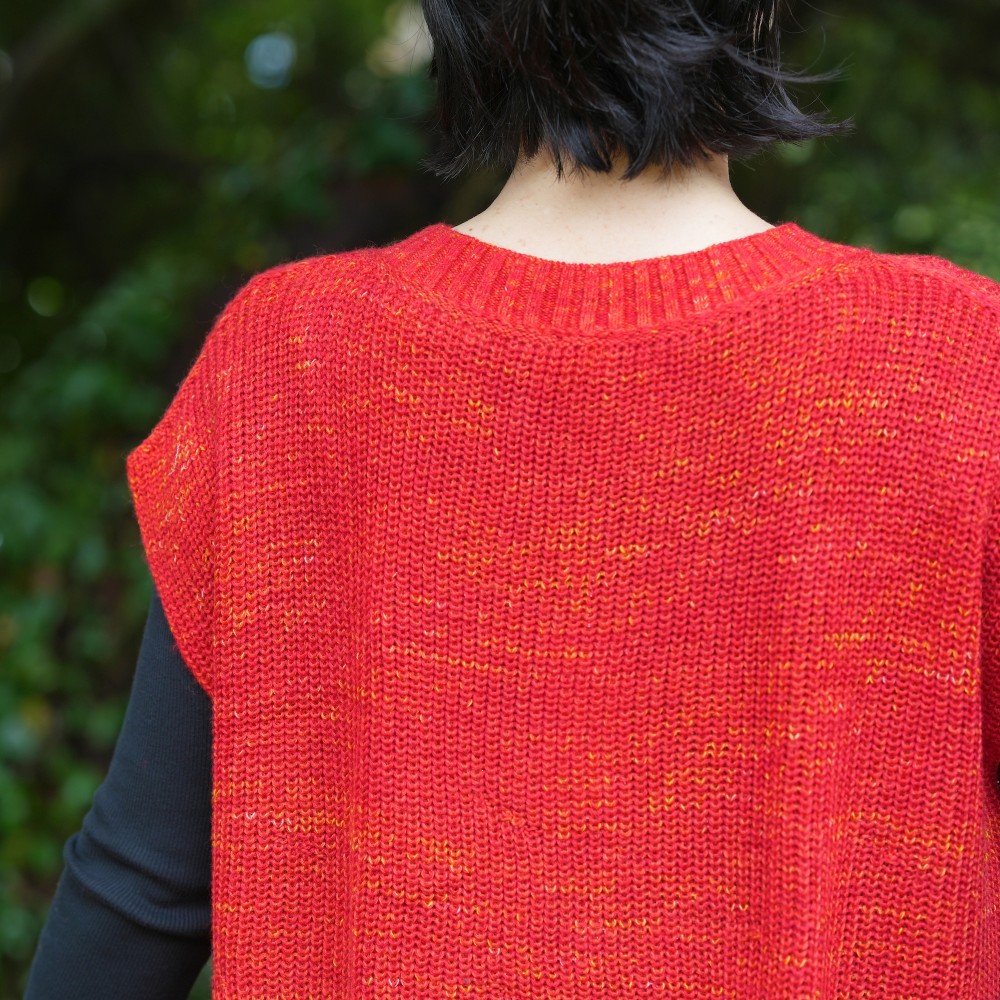 The long-awaited knit vest is great for layering over dresses, shirts, winter turtlenecks and sweaters. Featuring wide, relaxed armholes and side slits it drapes beautifully. Available in simple colors that are easy for beginners to style.