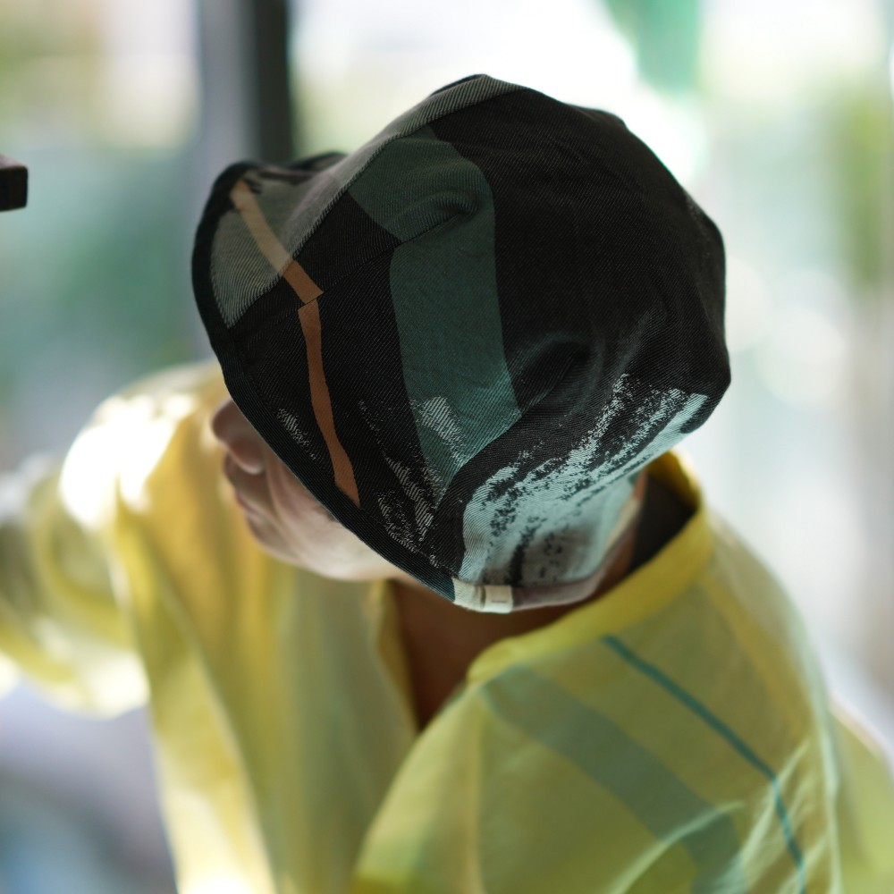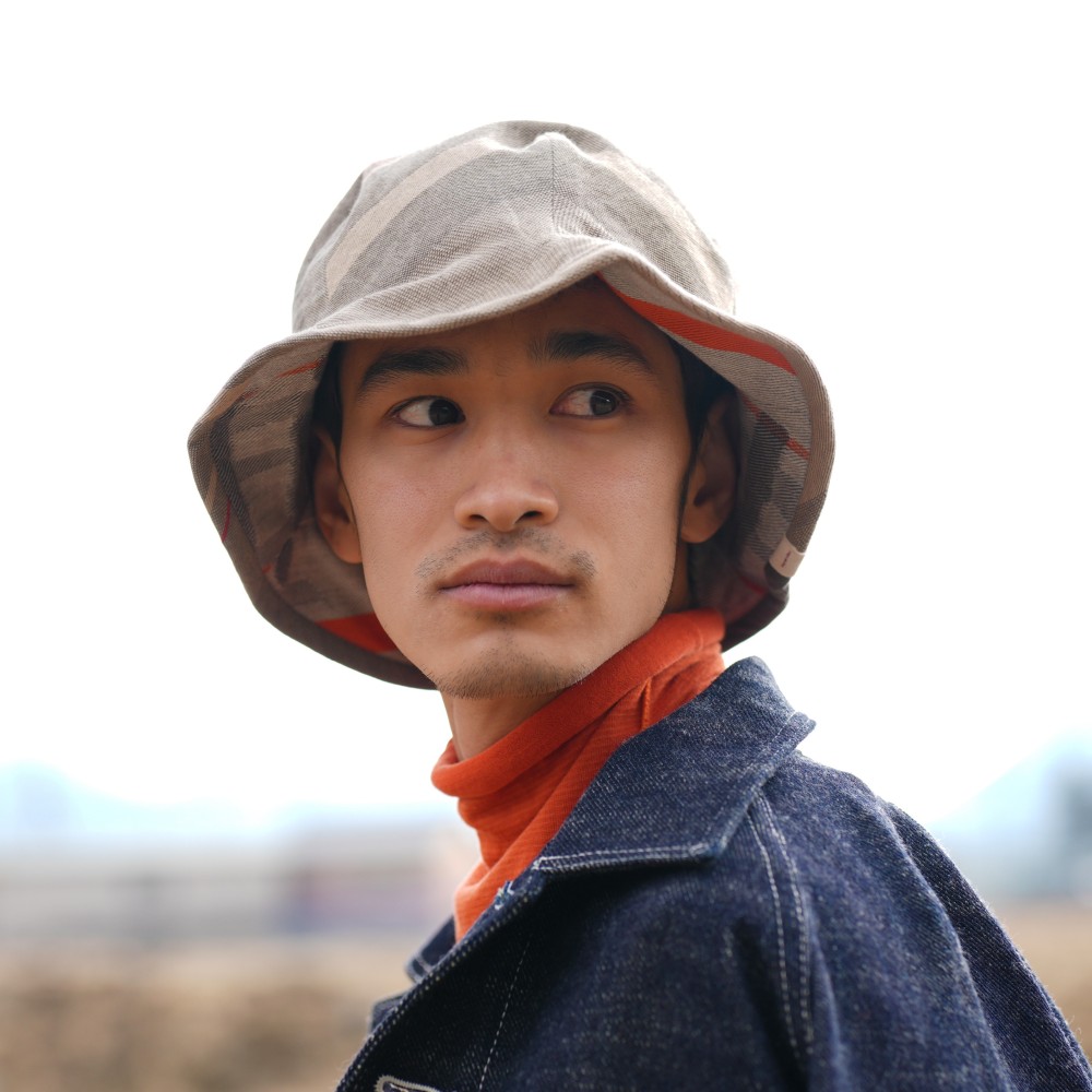 The hexagonal tiles on the walls of ‘tamaki niime okurimon,’ our Kamakura store, were the inspiration for this hat.