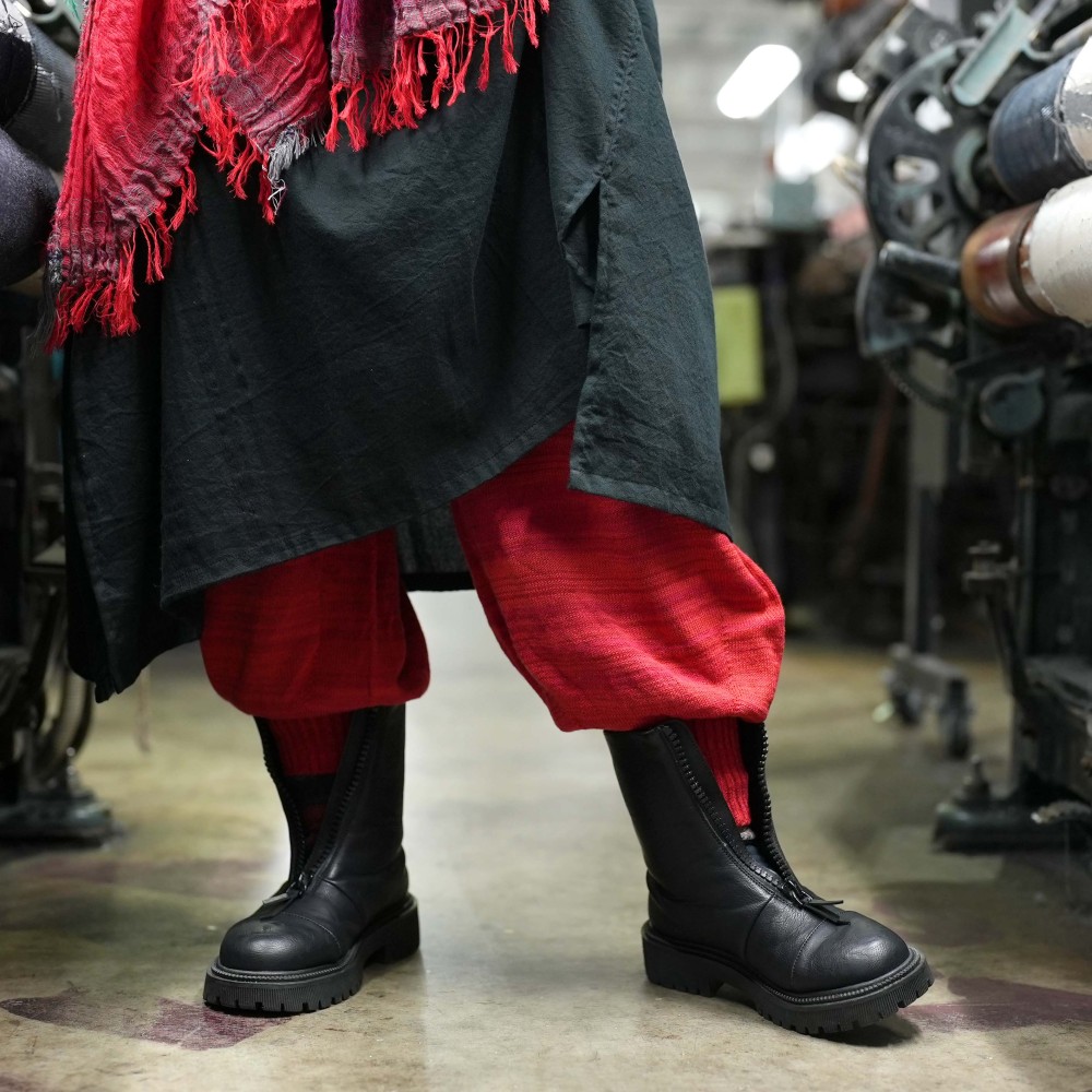 Our yura pants draw inspiration from yoga and Tai Chi wear, as well as traditional Middle Eastern garments.