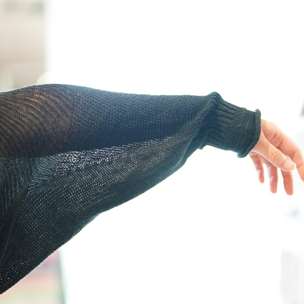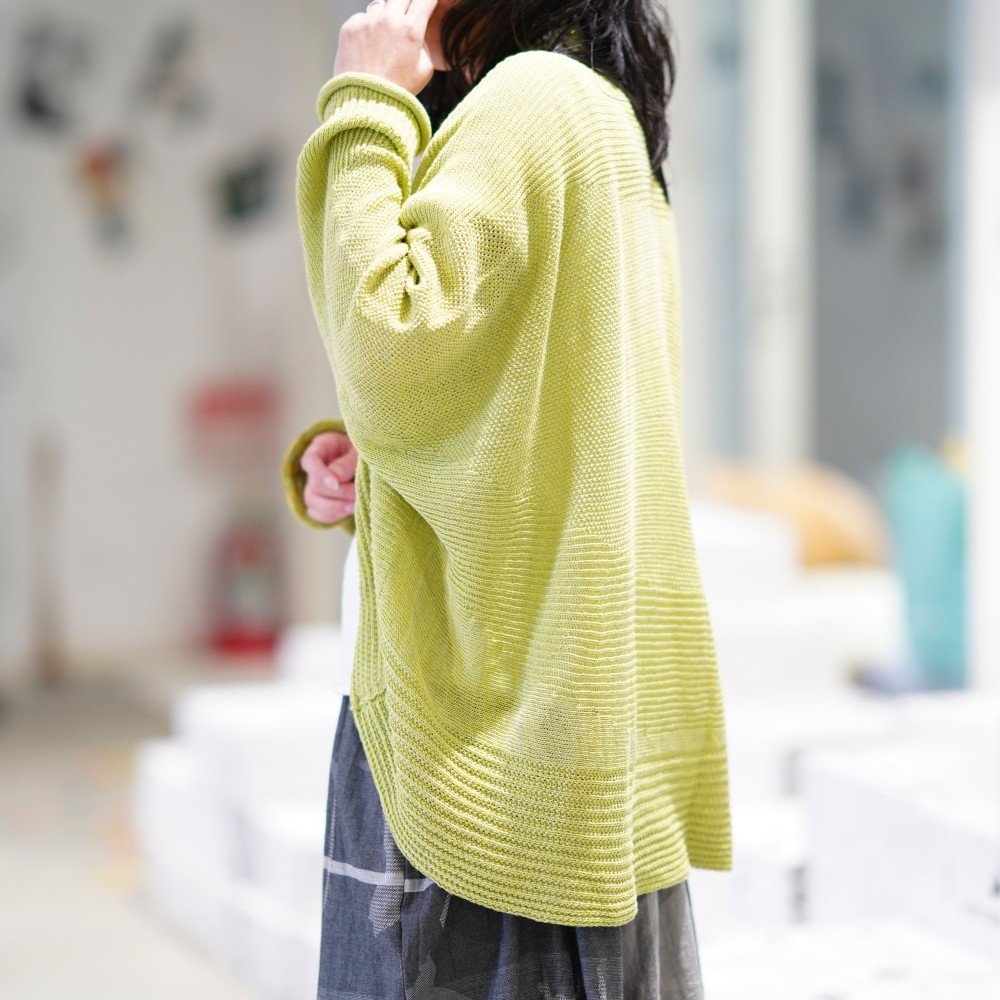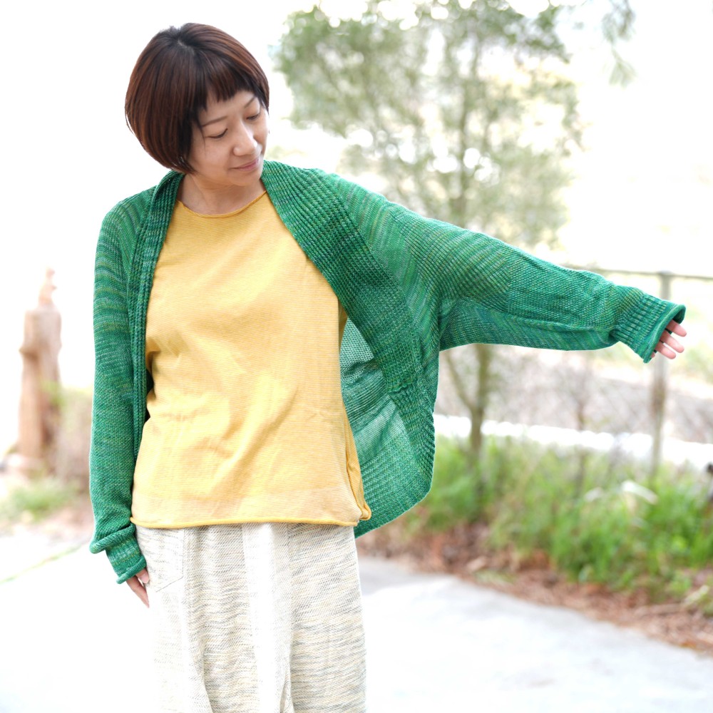 Refined over time, our beloved bolero-style cardigan offers both charm and comfort. It’s the perfect compliment to dresses and pants, with intricate arch-shaped knit patterns, inspired by rainbows, adding depth and character. This year’s playful color combinations bring a fresh touch for fans. Lightweight and airy, but perfect for keeping cozy in cool air-conditioned spaces.