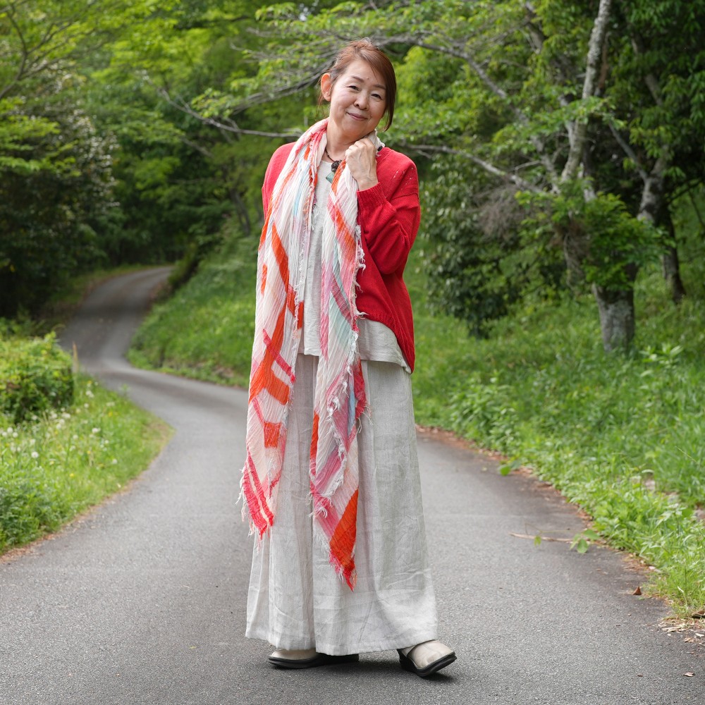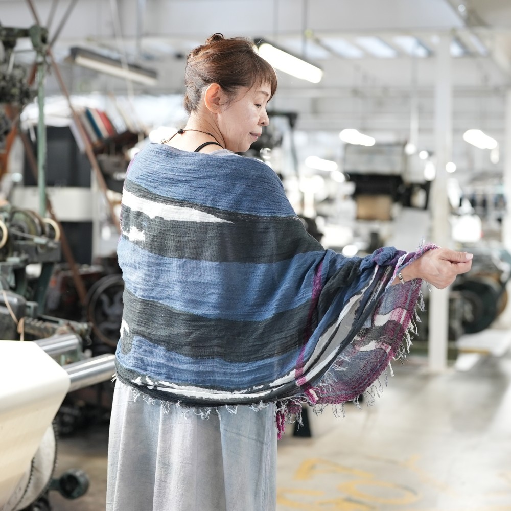Usually the same pattern is printed repeatedly but we kept it in a very small amount and changed the shawl as the base one by one, it’s the one and only print shawl.