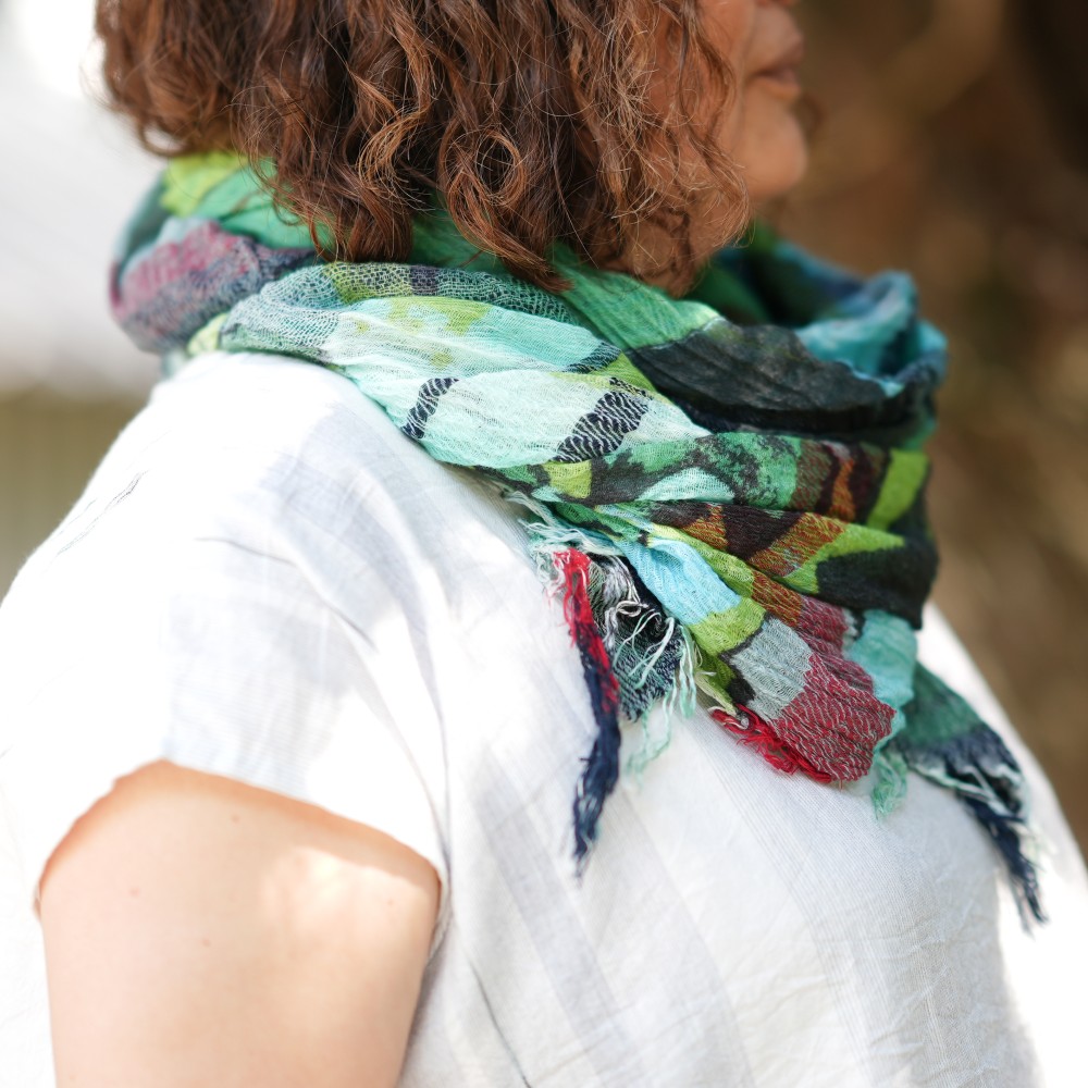 オリジナルプリントを施したprint shawlは、