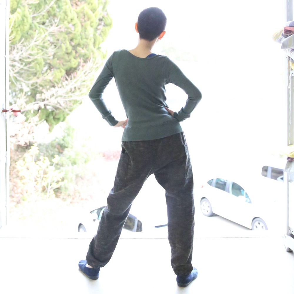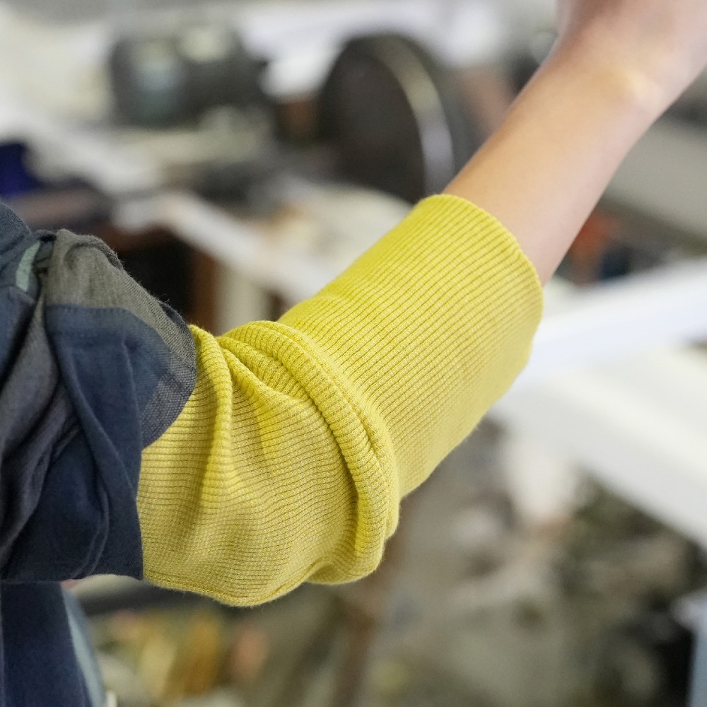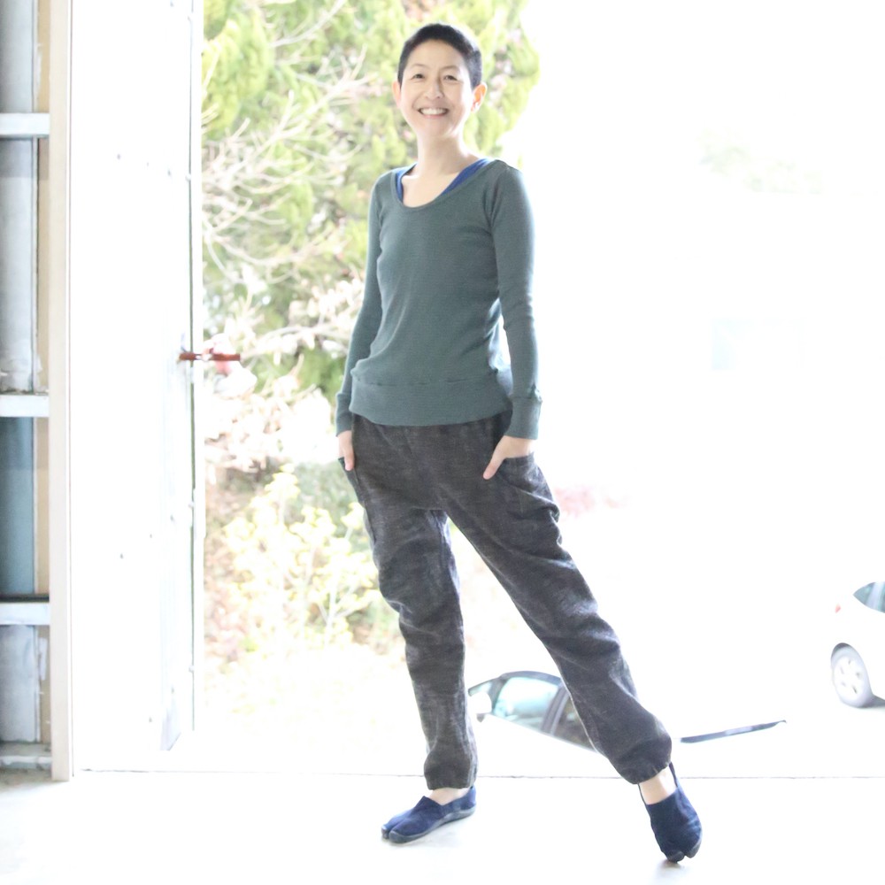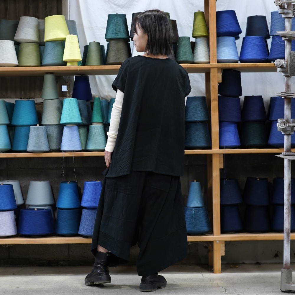 We made a cut-and-sew which has excellent silhouette and comfort.